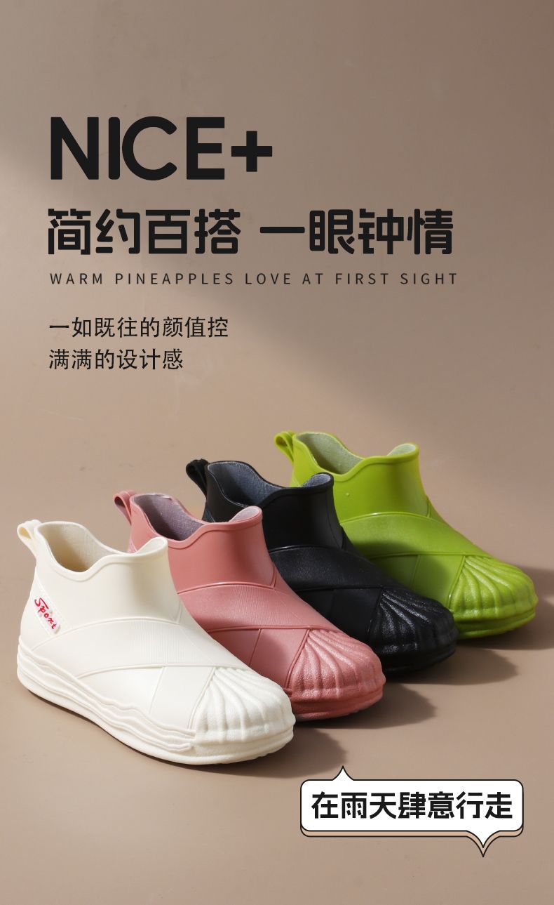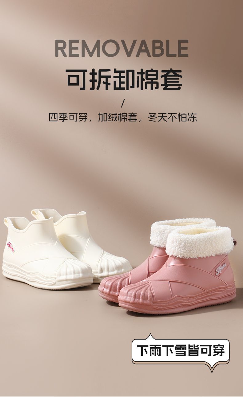 새로운 패션 레인 부츠 여성용 짧은 튜브 여성용 낮은 튜브 따뜻한 레인 부츠 코튼 벨벳 커버 워터 부츠 미끄럼 방지 물 신발 고무 신발 여성