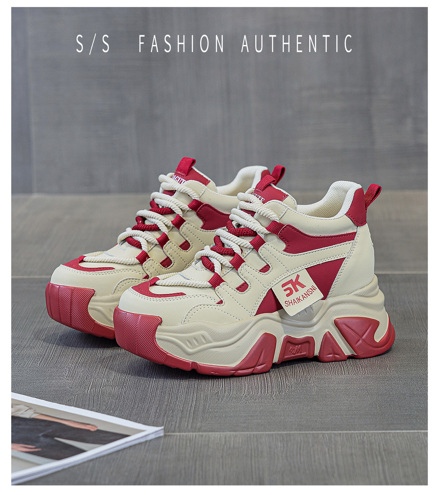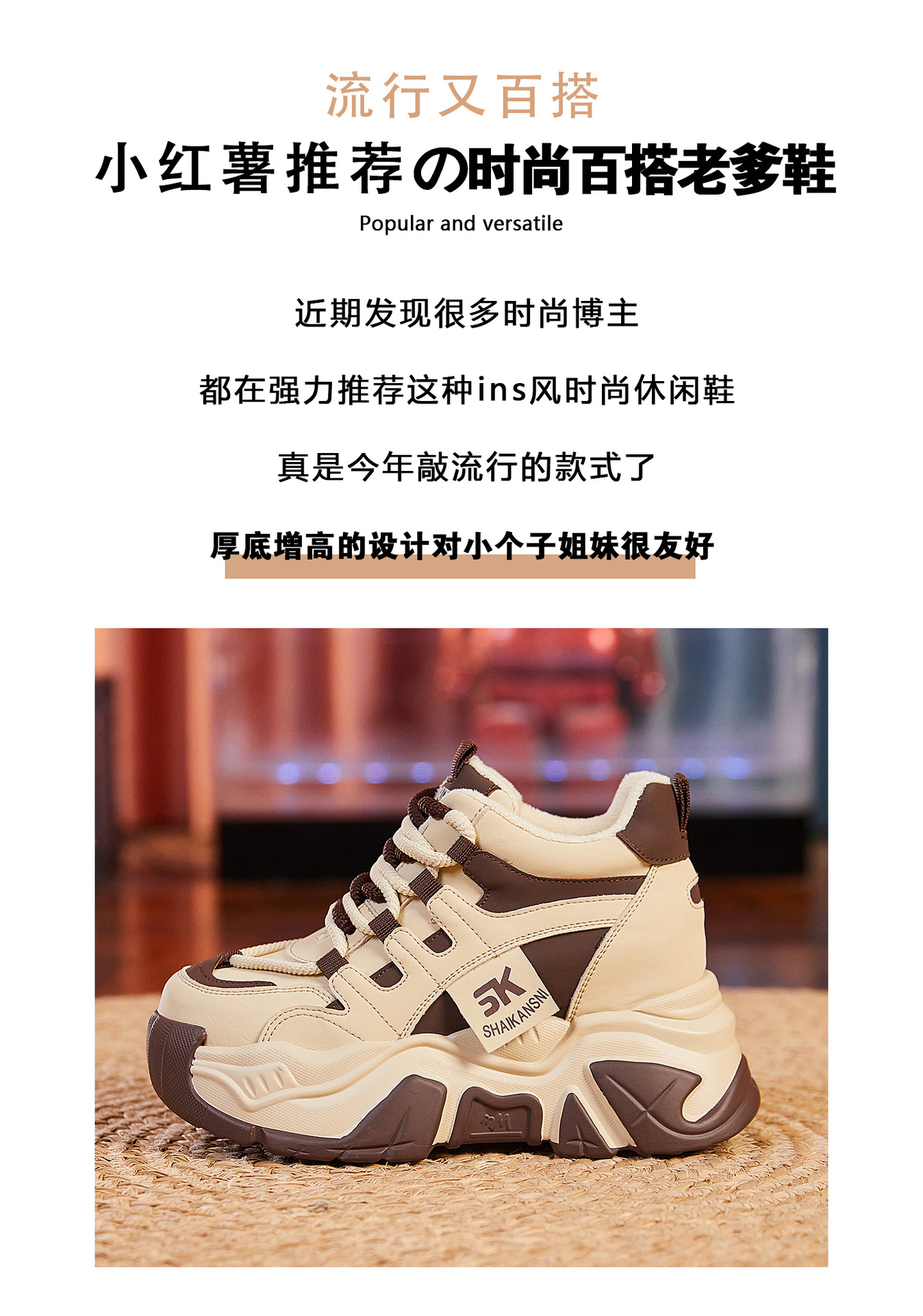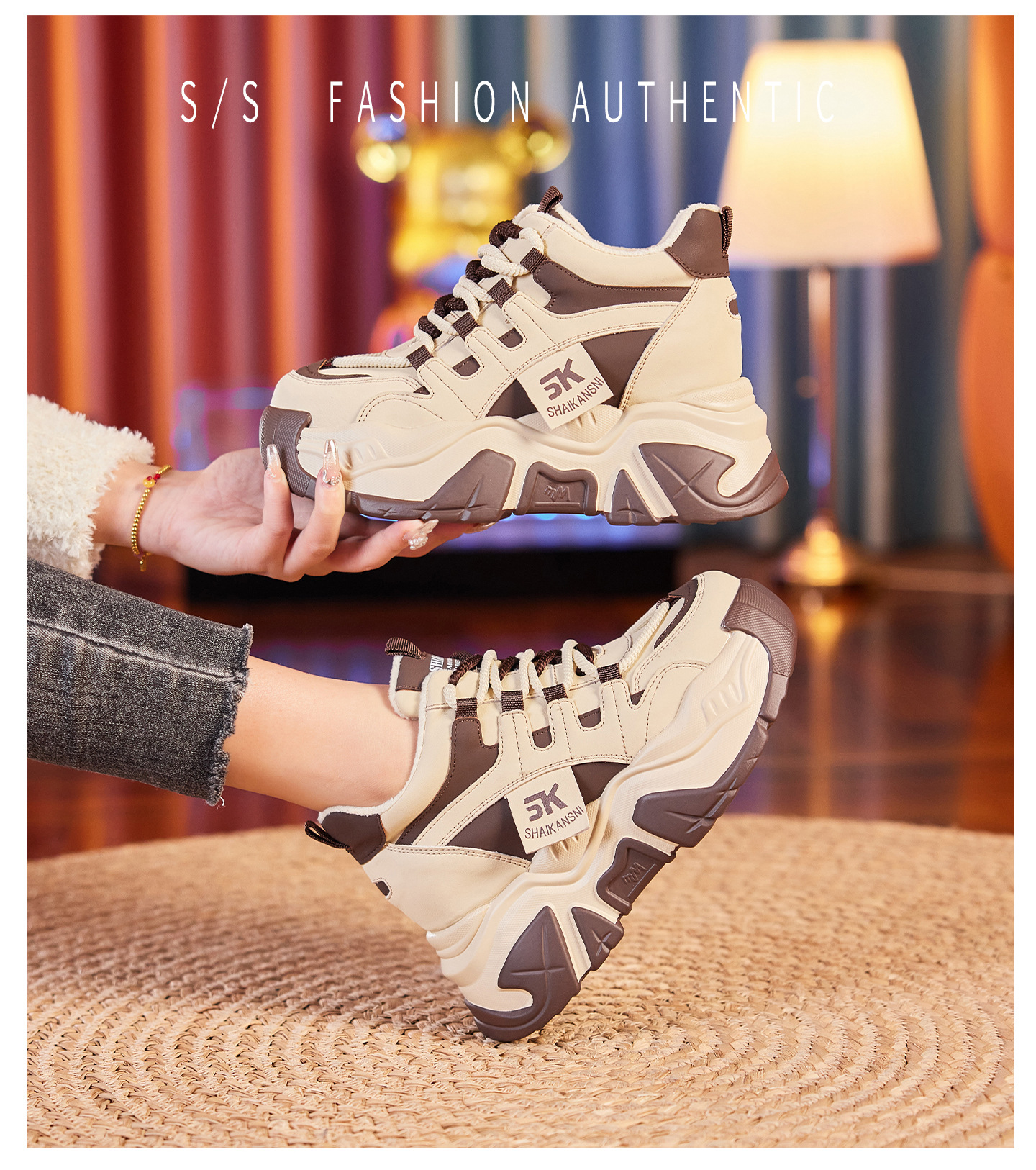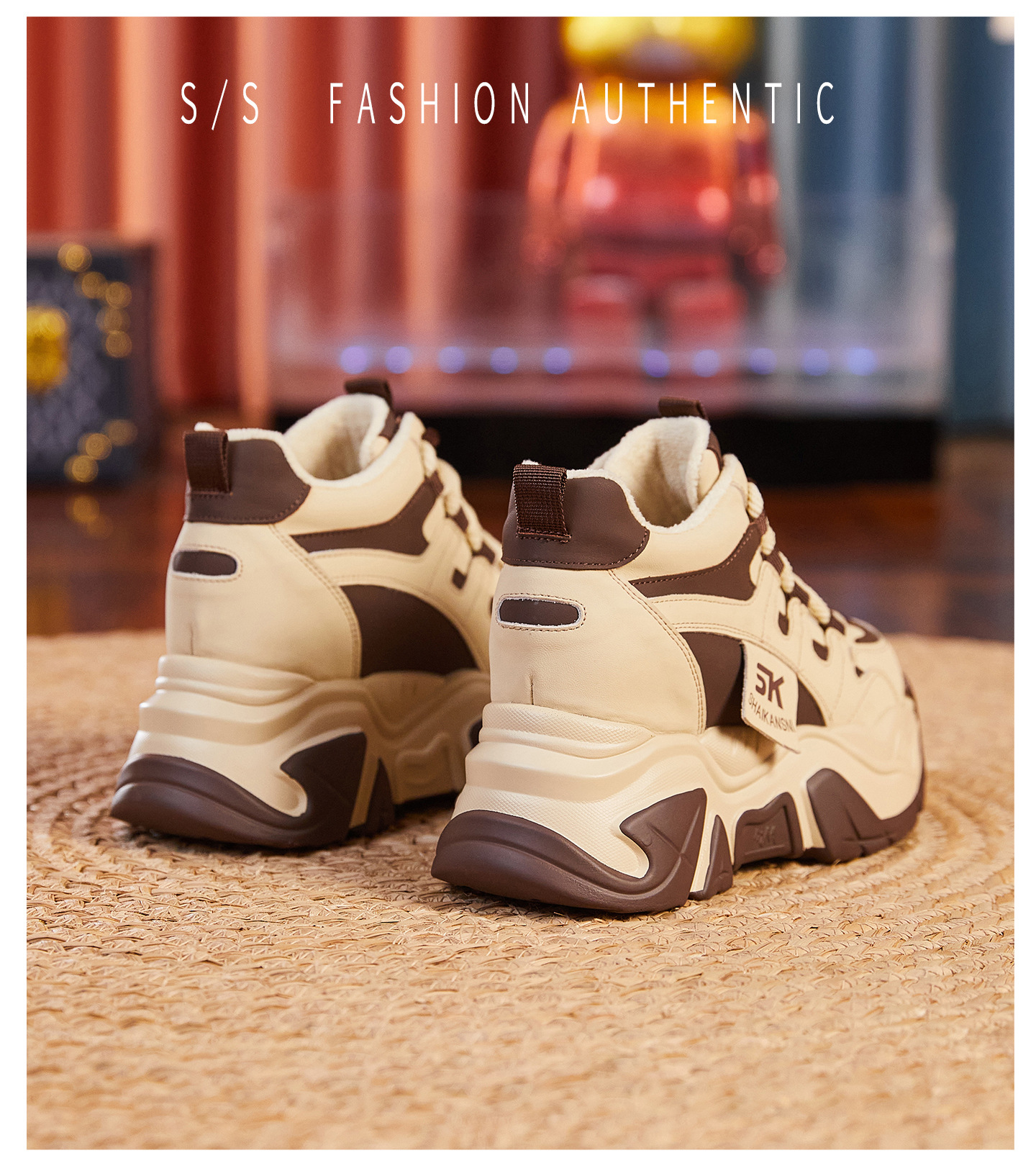 755 겨울 새로운 정품 가죽 내부 높이 증가 캐주얼 아빠 신발 두꺼운 단독 웨지 학생 신발 올 매치 컬러 매칭 여성 신발