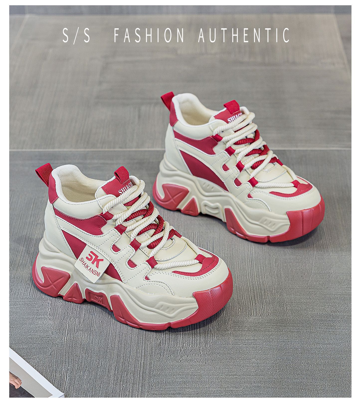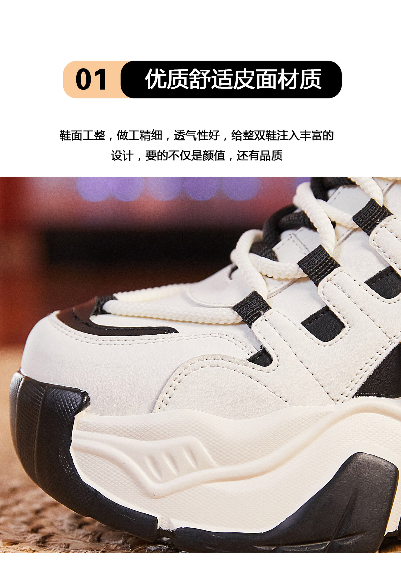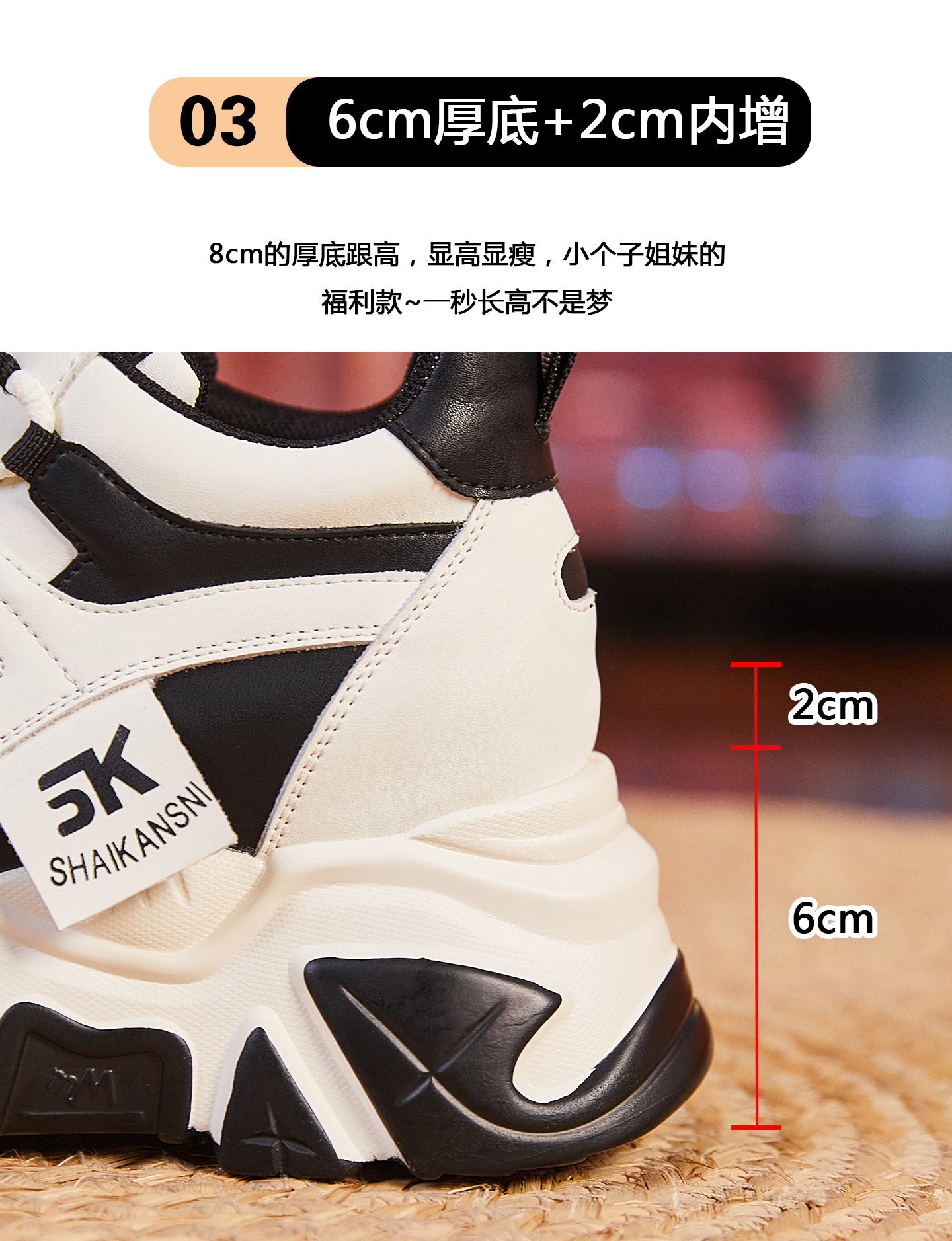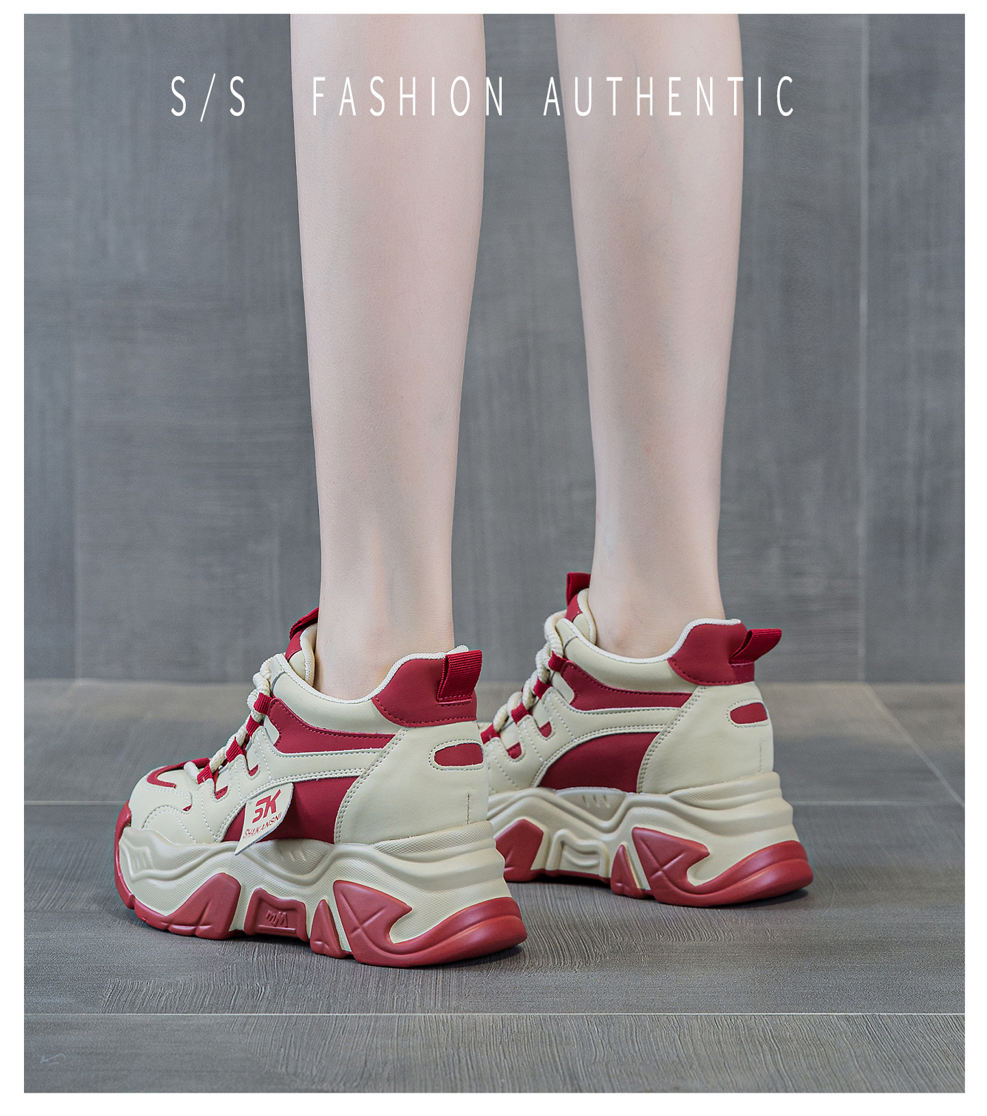 755 겨울 새로운 정품 가죽 내부 높이 증가 캐주얼 아빠 신발 두꺼운 단독 웨지 학생 신발 올 매치 컬러 매칭 여성 신발