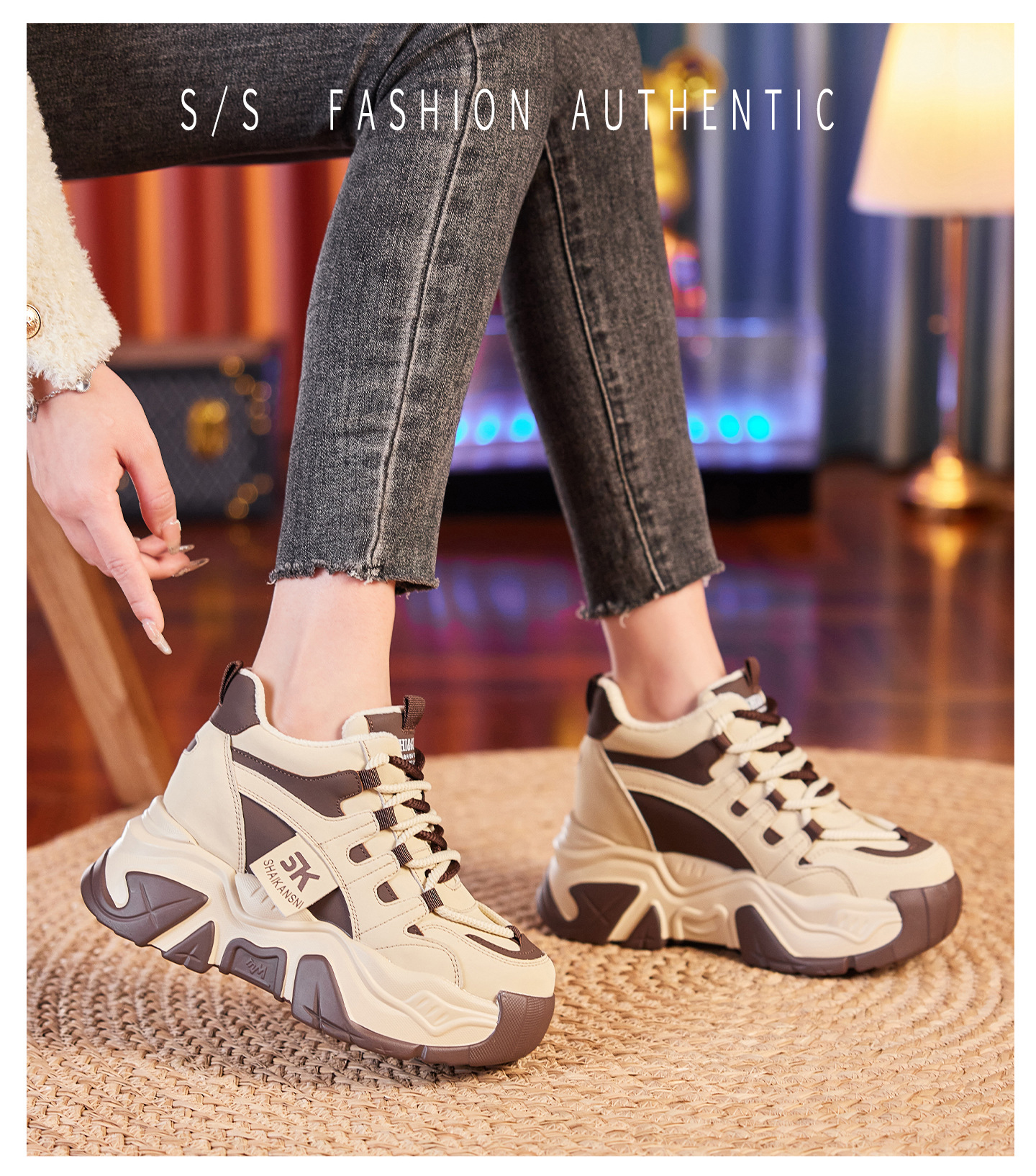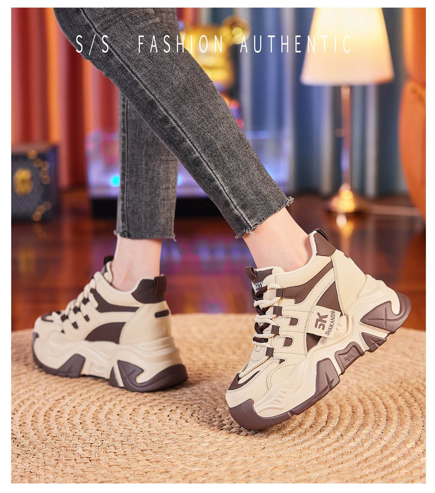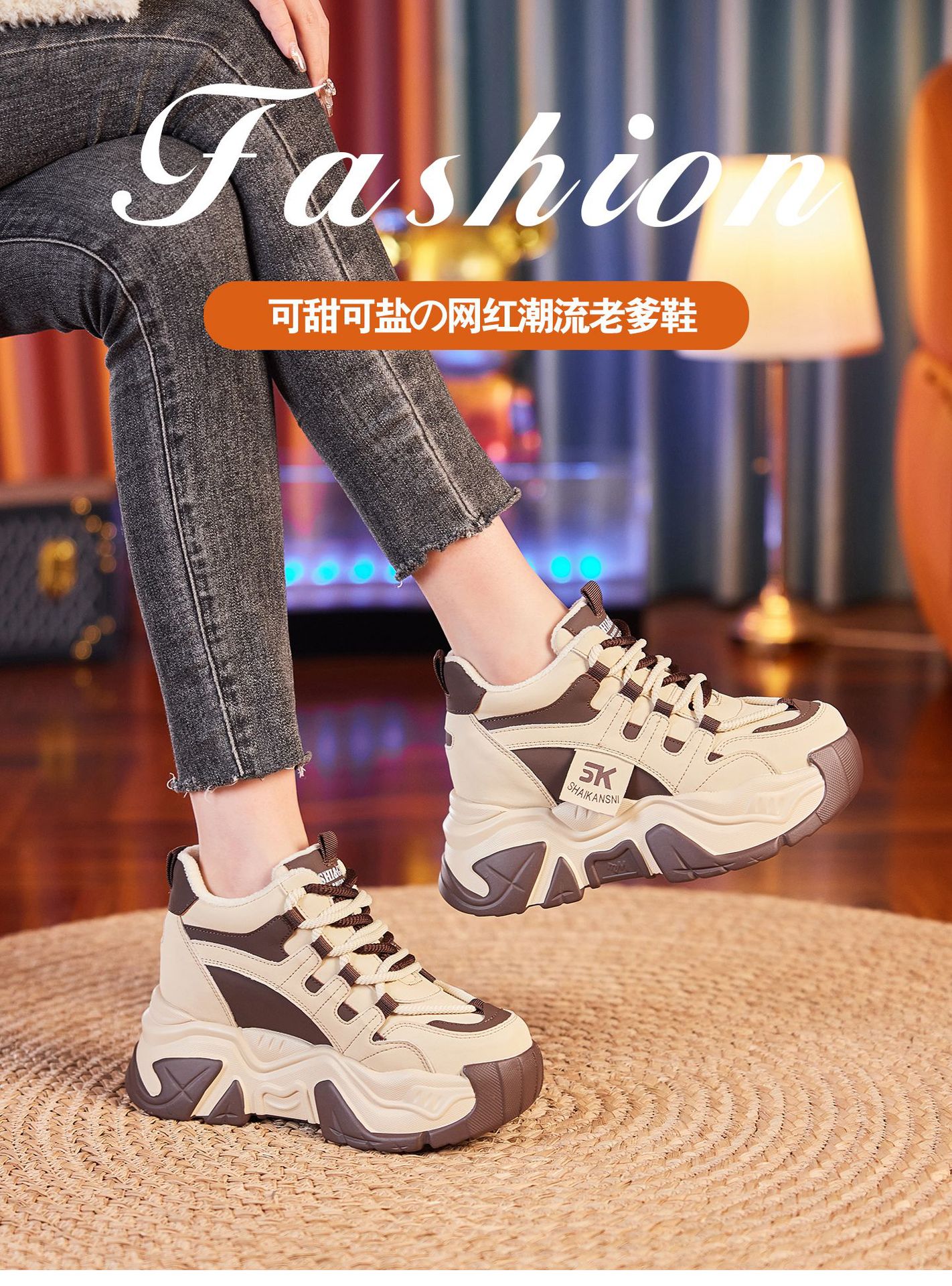 755 겨울 새로운 정품 가죽 내부 높이 증가 캐주얼 아빠 신발 두꺼운 단독 웨지 학생 신발 올 매치 컬러 매칭 여성 신발스토어 가기