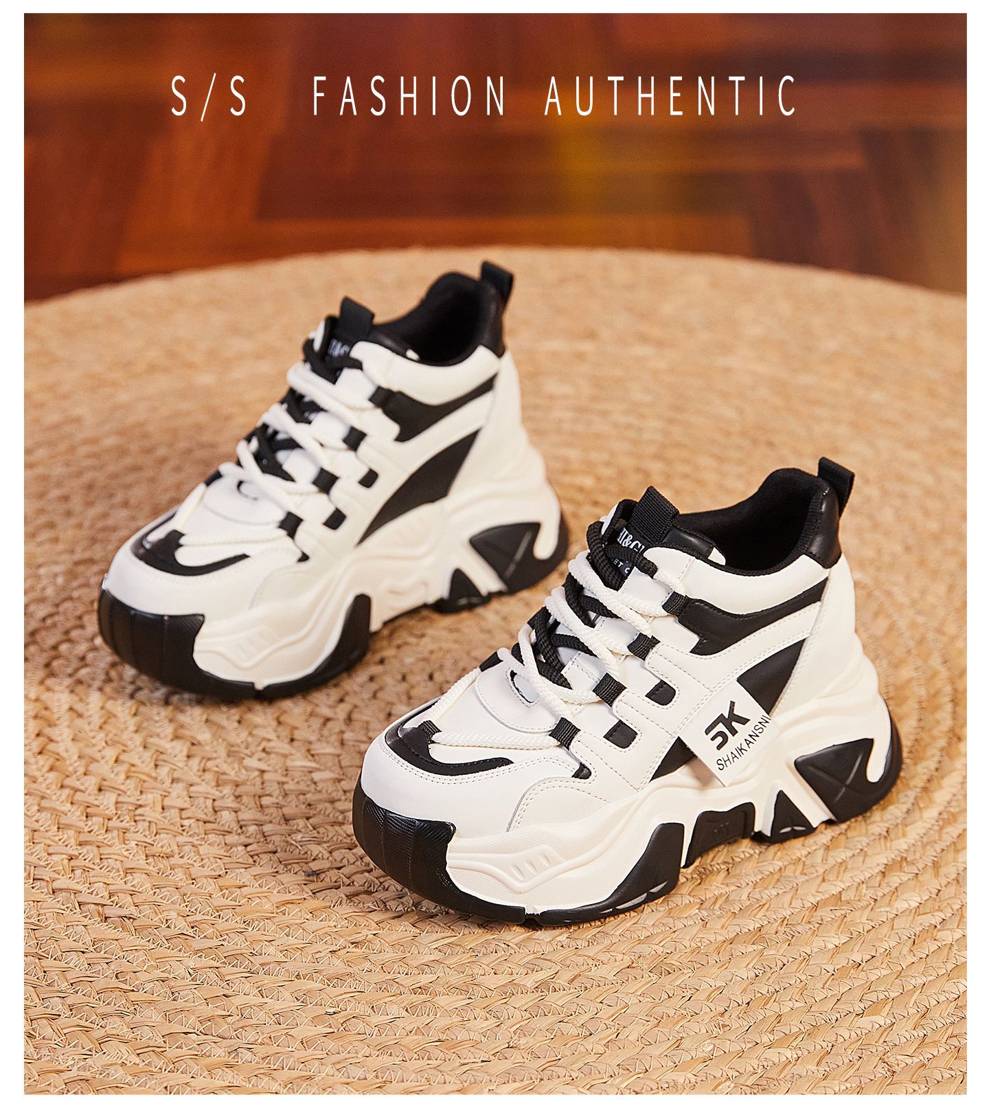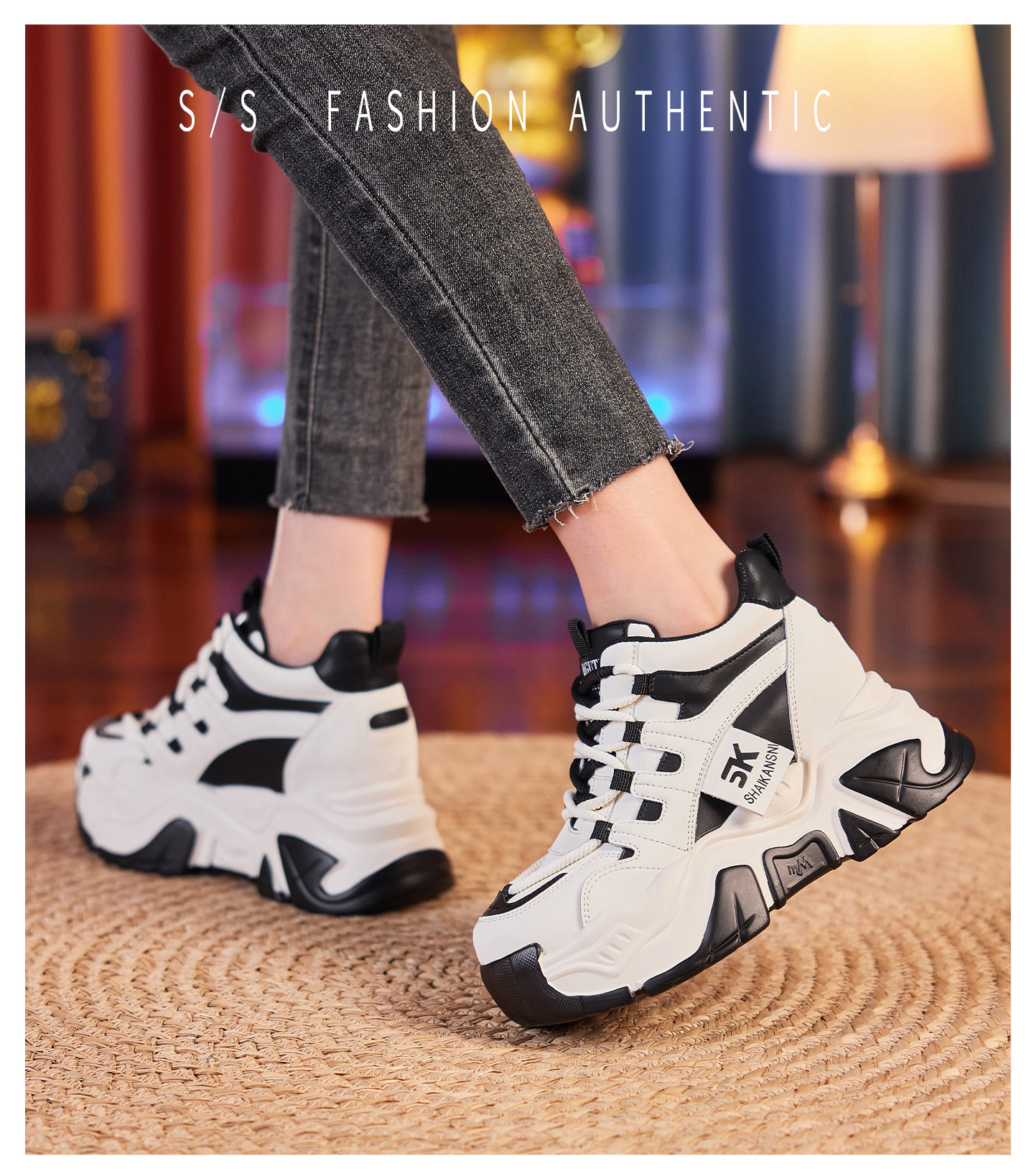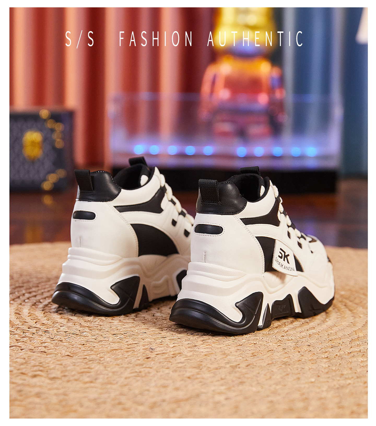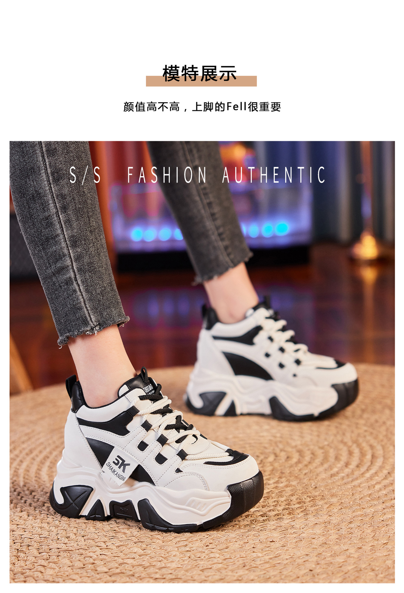 755 겨울 새로운 정품 가죽 내부 높이 증가 캐주얼 아빠 신발 두꺼운 단독 웨지 학생 신발 올 매치 컬러 매칭 여성 신발스토어 가기