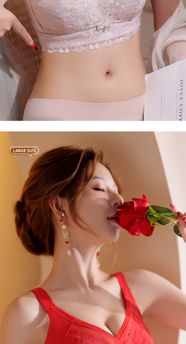 빨간 속옷 여자의 플러스 사이즈 큰 가슴 표시 작은 가슴 얇은 끈 없는 안티 라이트 수집 상부 수집 보조 유방 브래지어