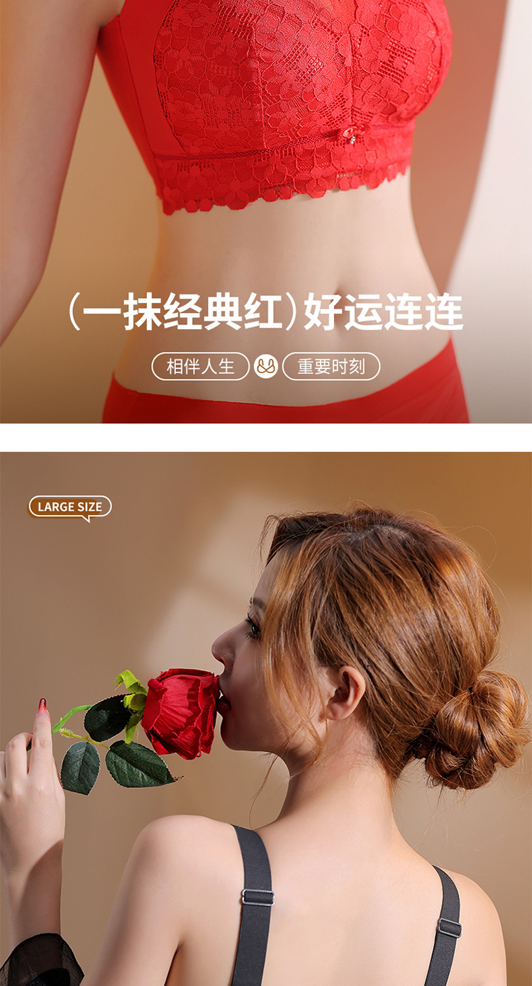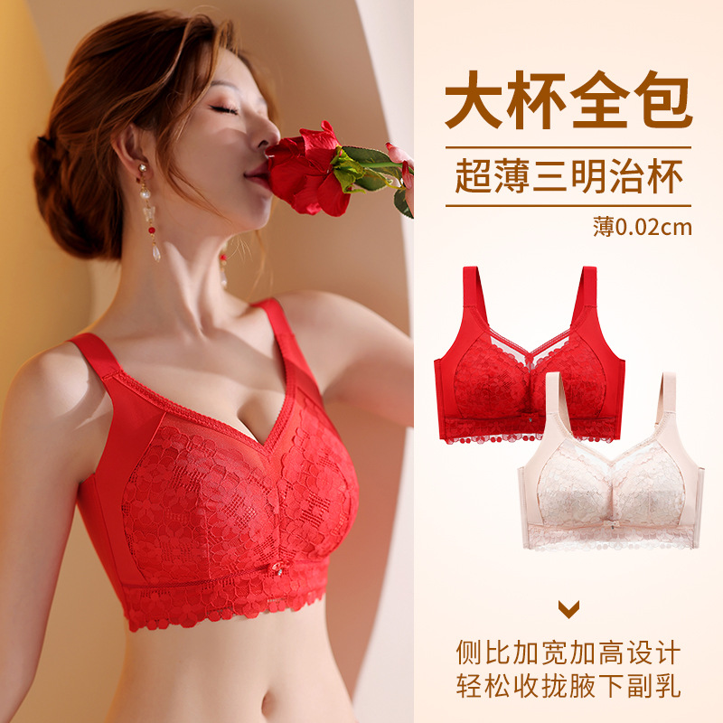 빨간 속옷 여자의 플러스 사이즈 큰 가슴 표시 작은 가슴 얇은 끈 없는 안티 라이트 수집 상부 수집 보조 유방 브래지어스토어 가기