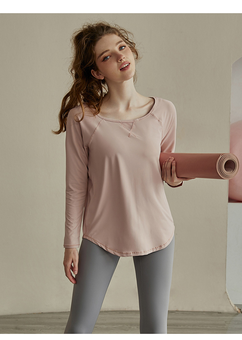 배드민턴 세트 스포츠 최고 여성 필라테스 러닝 피트니스 세트 루즈 티셔츠 요가 긴팔 블라우스