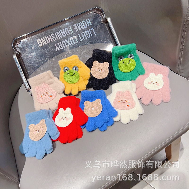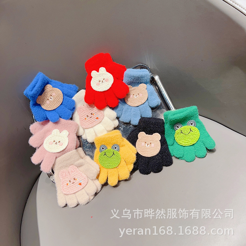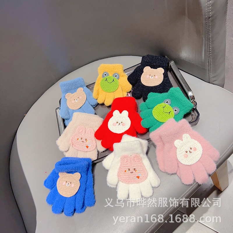 겨울 새로운 따뜻한 장갑 어린이 만화 다섯 손가락 손가락 소년 장갑 소녀 아기 니트 방풍 장갑스토어 가기