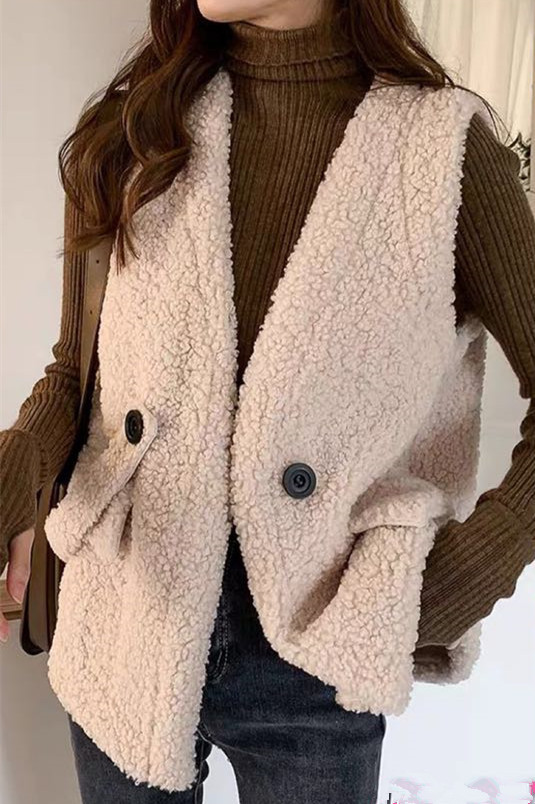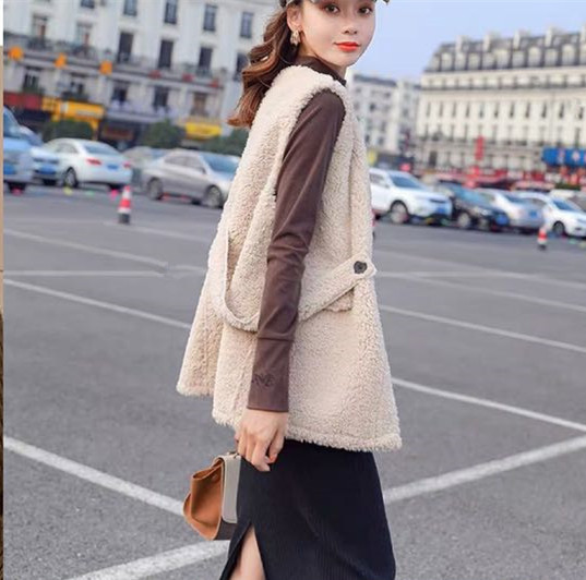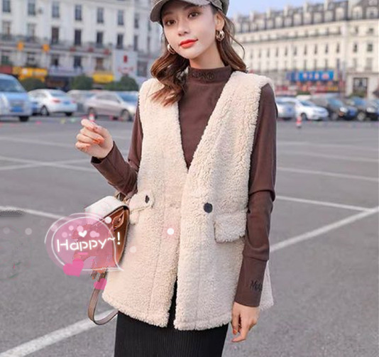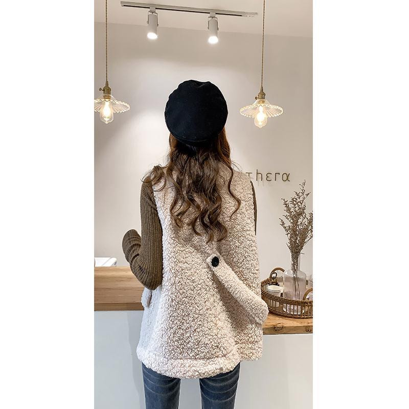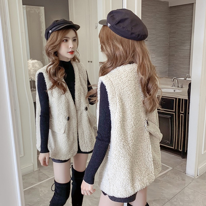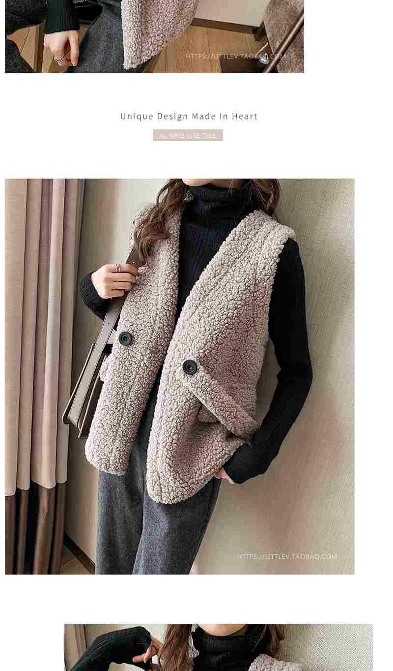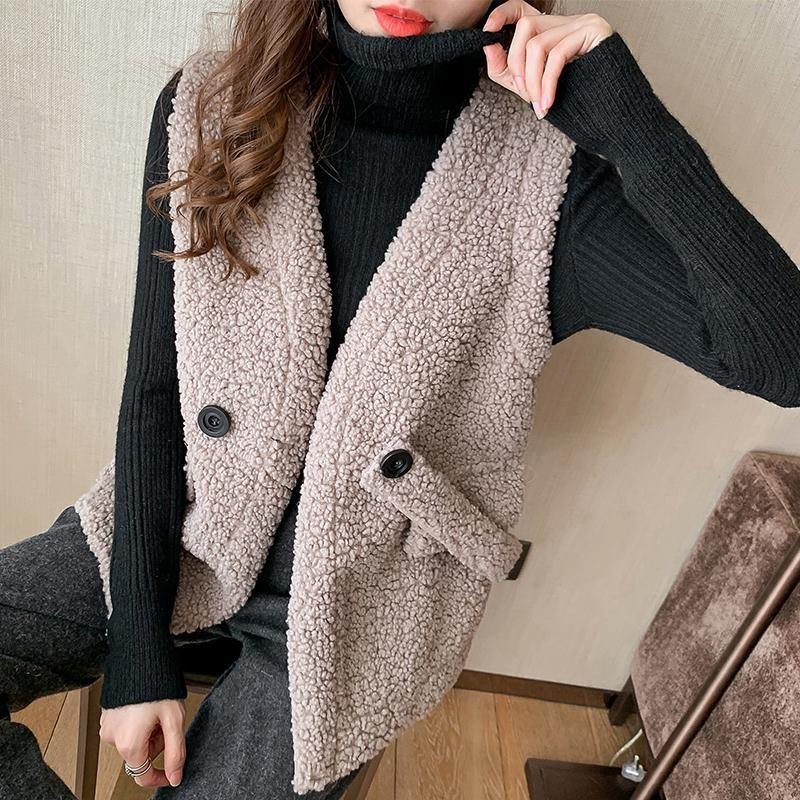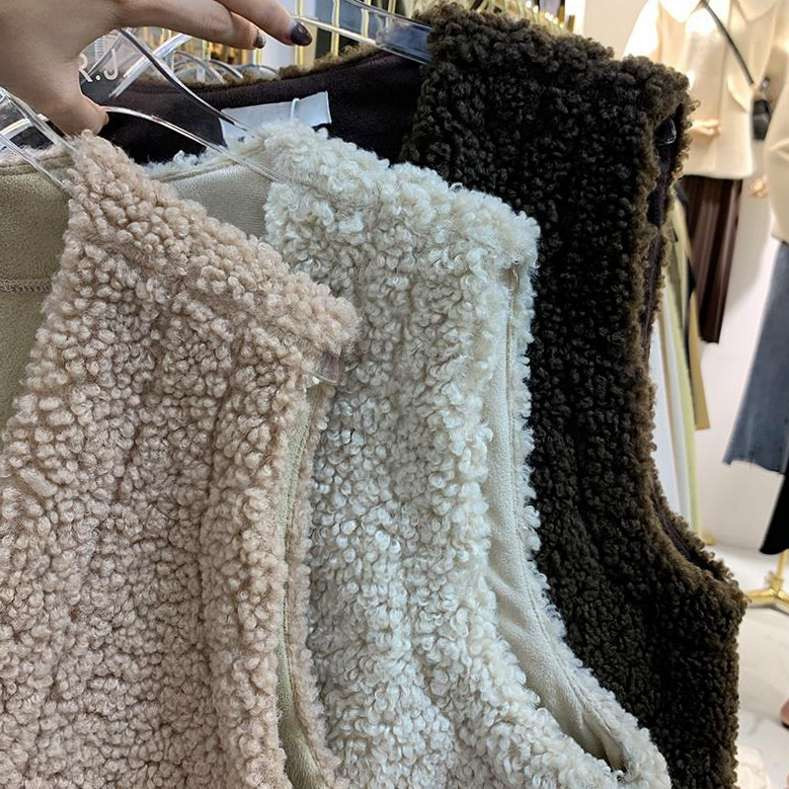 양고기 양모 조끼 여자 2023 년 가을 겨울 새로운 느슨한 한국 스타일 모피 원 양모 조끼 재킷 조끼스토어 가기