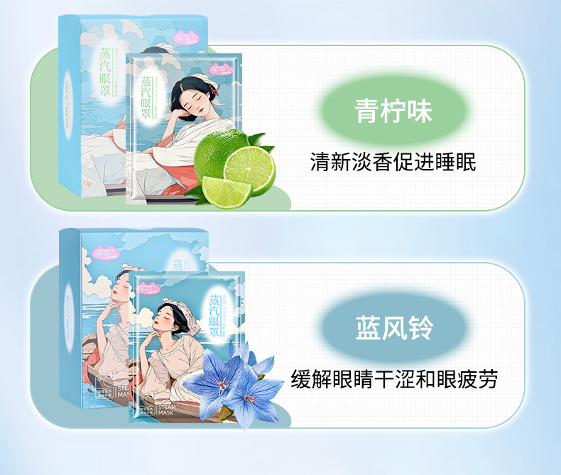 Qian Lu Guo Feng Chao 스팀 아이 마스크 학생 수면 아이 마스크 공장 재고 블루 윈드 벨 라임 맛스토어 가기