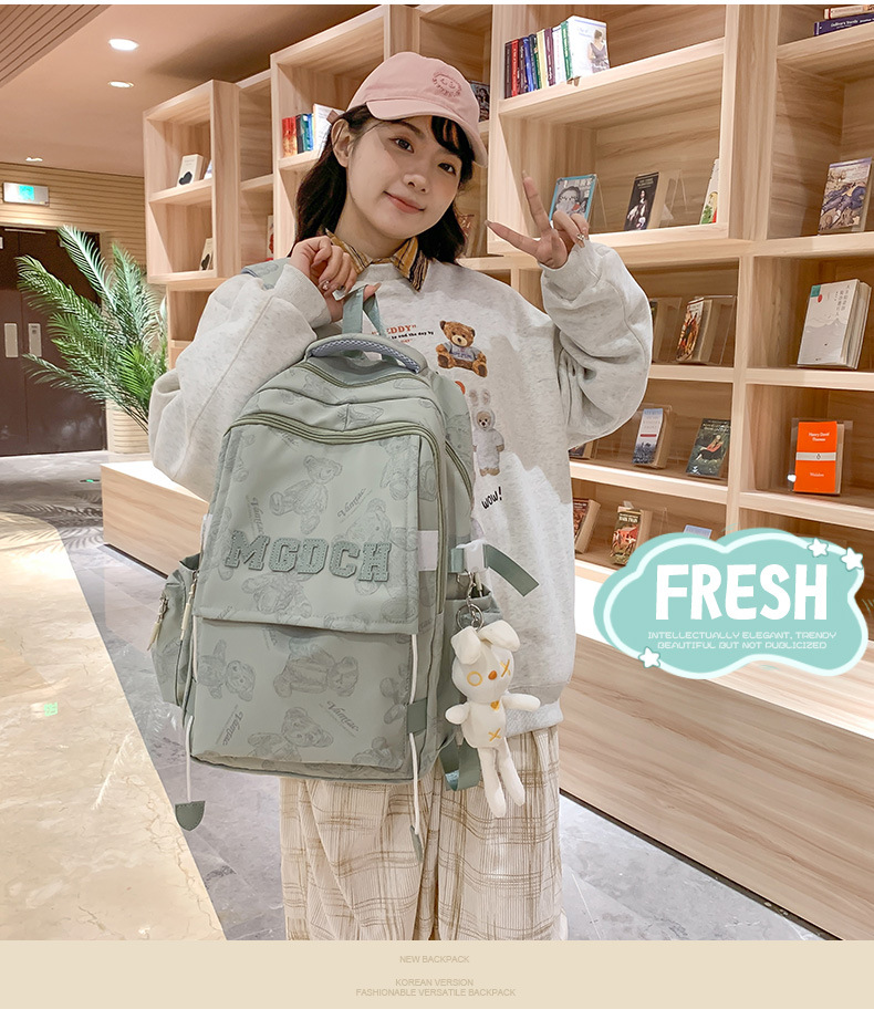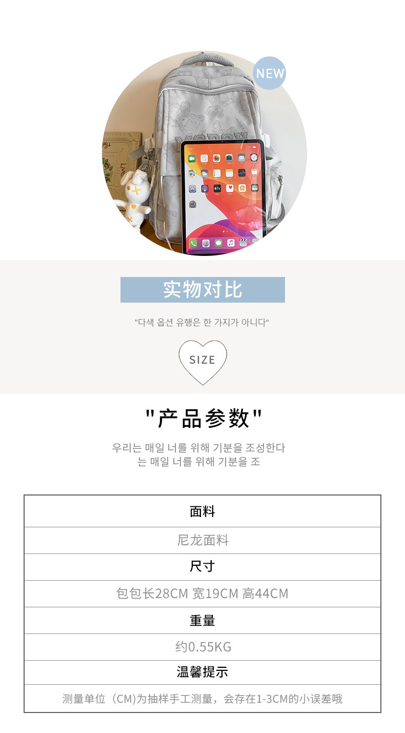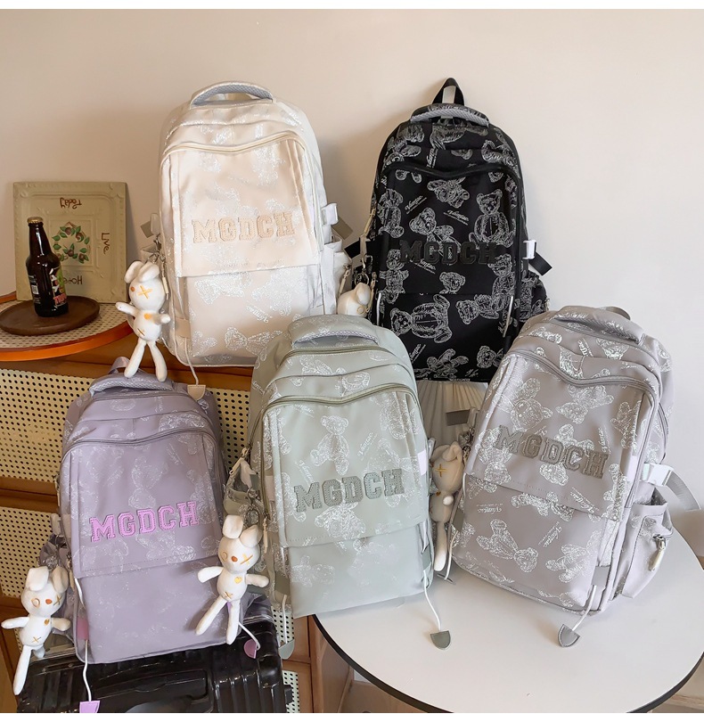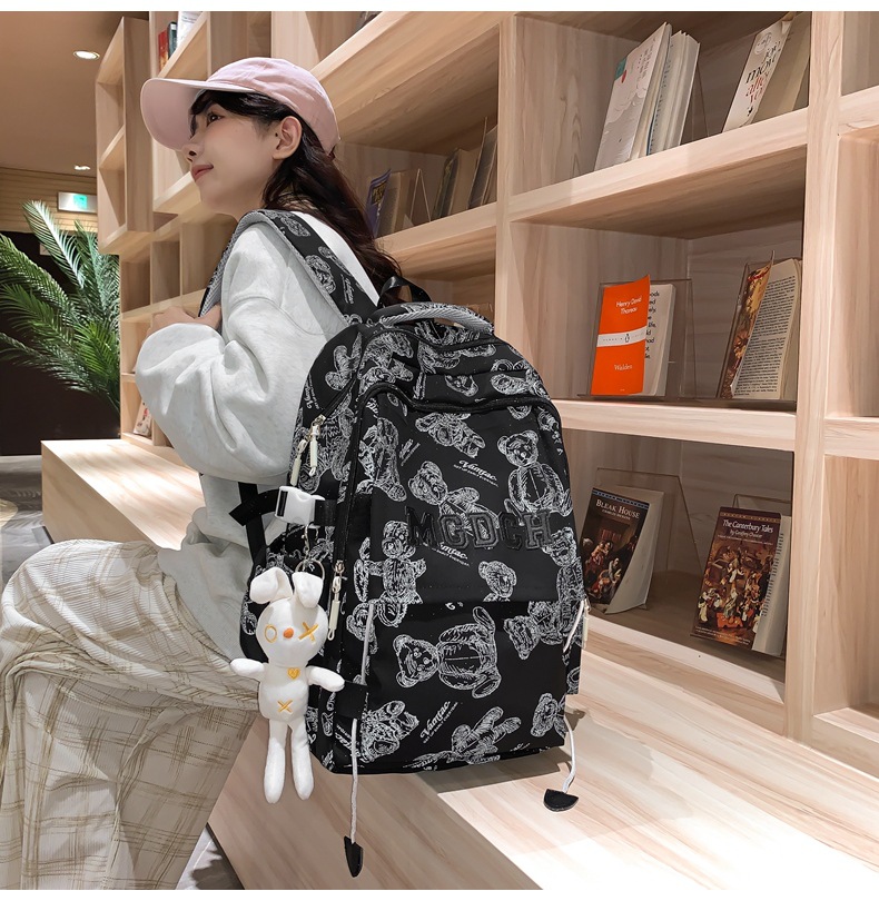 새로운 곰 배낭 책가방 대용량 강한 더러움 방지 대학생 배낭 고등학생 소년 배낭