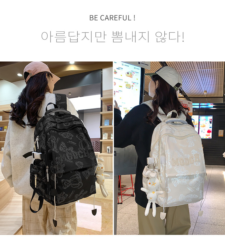 새로운 곰 배낭 책가방 대용량 강한 더러움 방지 대학생 배낭 고등학생 소년 배낭스토어 가기