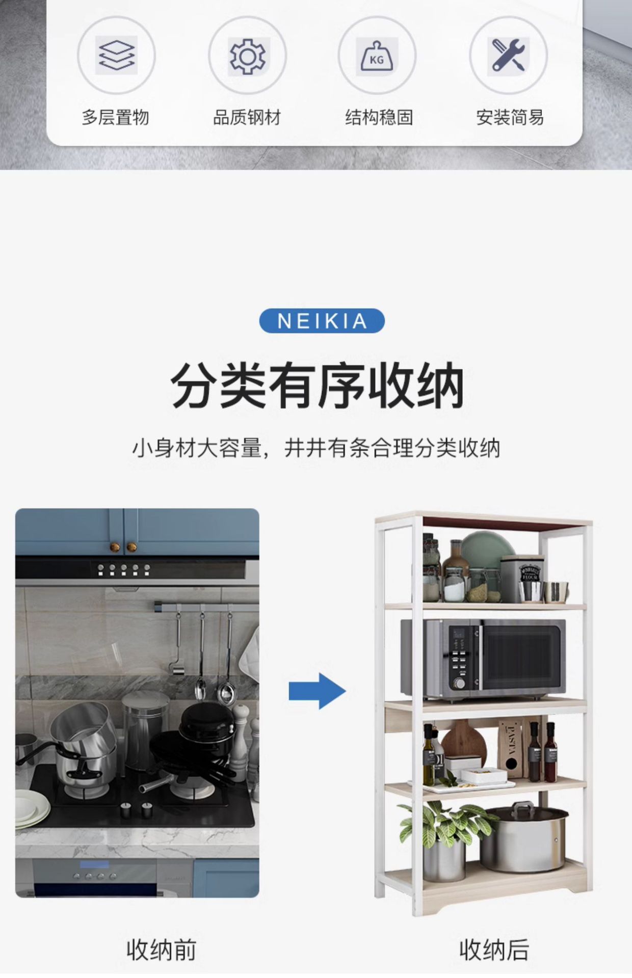 다기능 수납 선반, 다층 수납 선반, 냄비, 오븐, 전자레인지, 조미료 선반, 칸막이스토어 가기