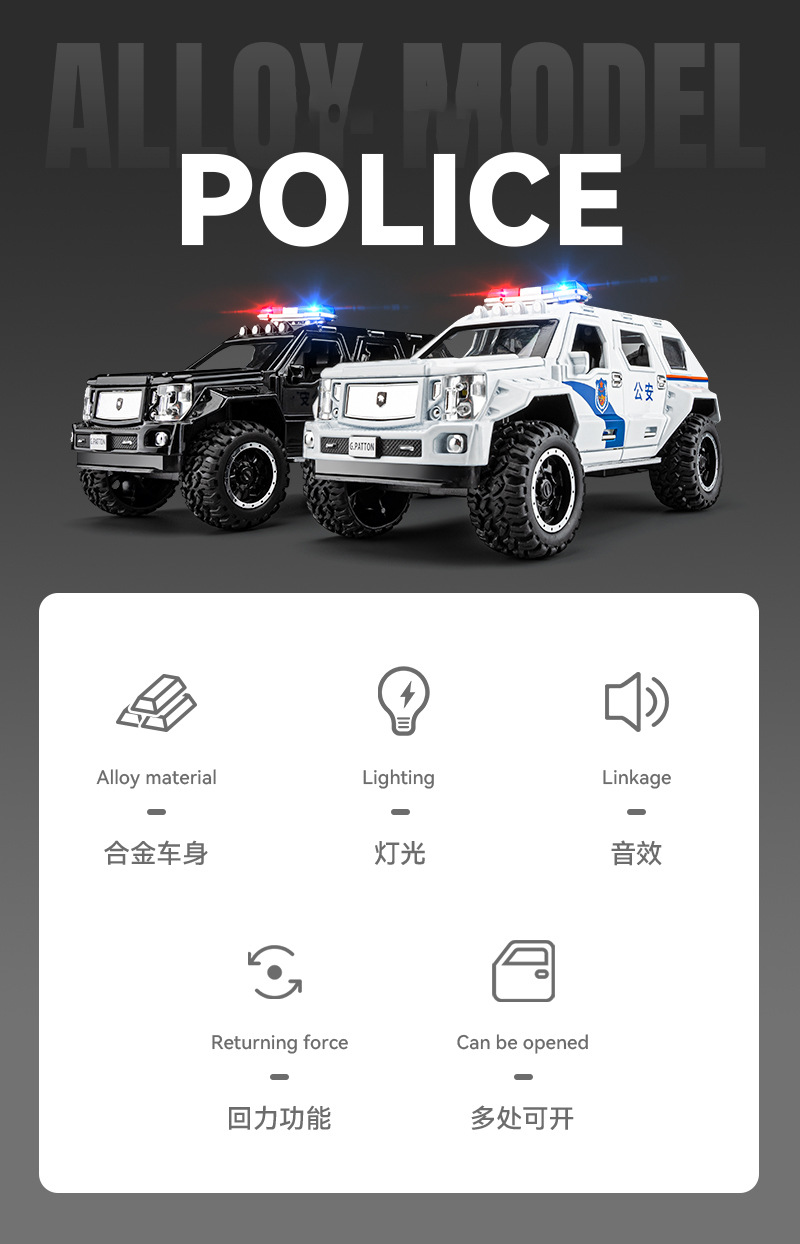1:24 에 자동차 조지 패튼 경찰차 폭동 자동차 소리와 라이트 백 자동차 어린이 장난감 자동차 시뮬레이션 합금 자동차 모델