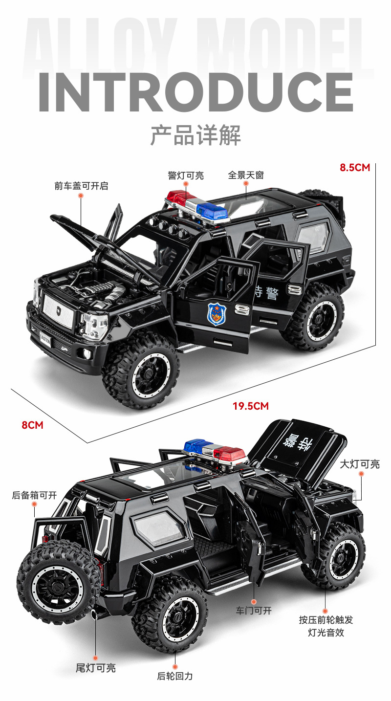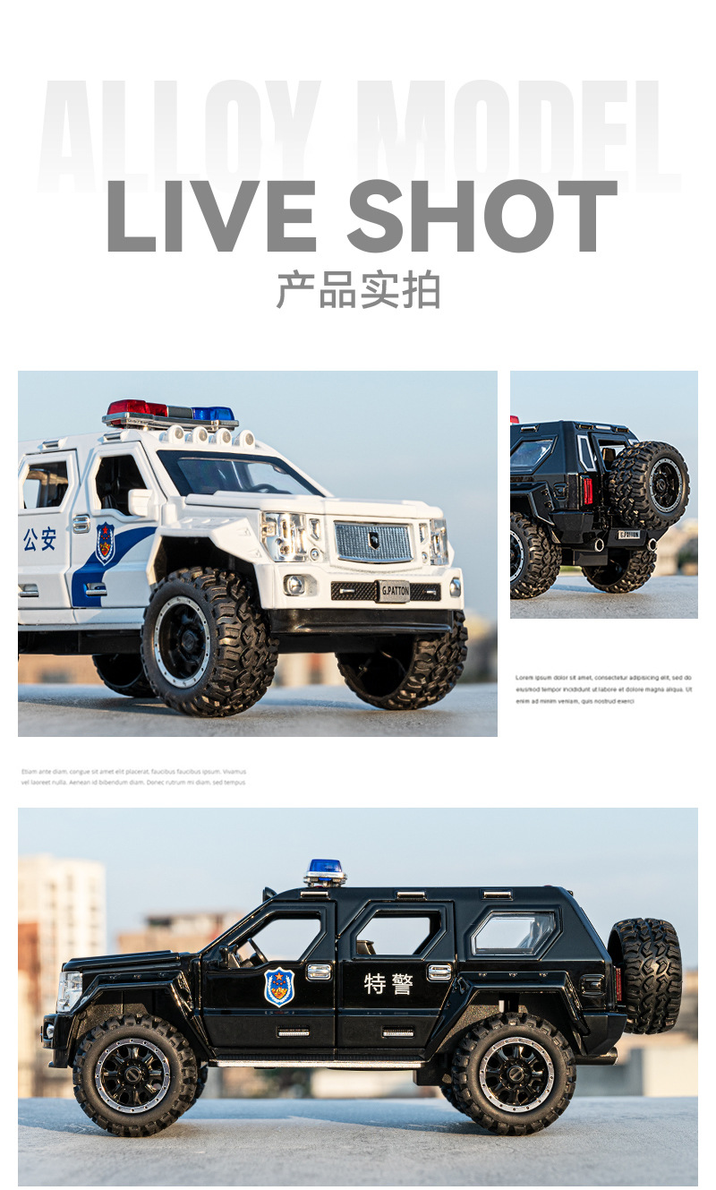 1:24 에 자동차 조지 패튼 경찰차 폭동 자동차 소리와 라이트 백 자동차 어린이 장난감 자동차 시뮬레이션 합금 자동차 모델스토어 가기