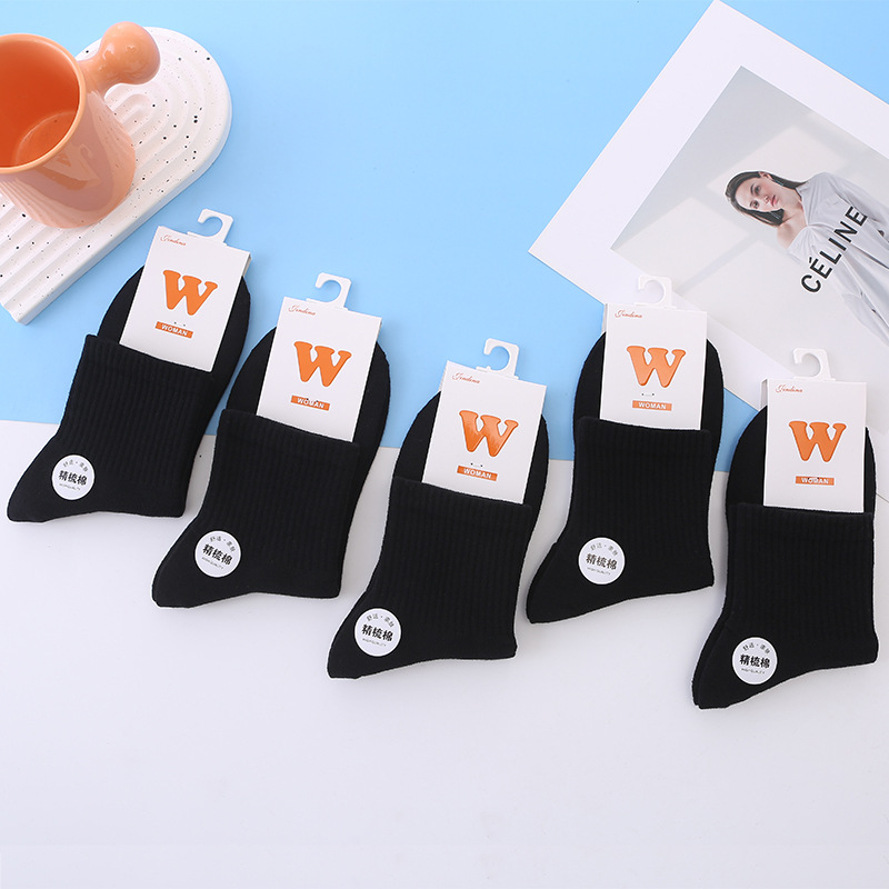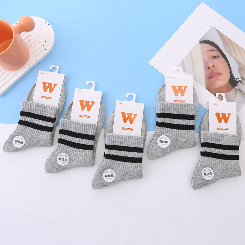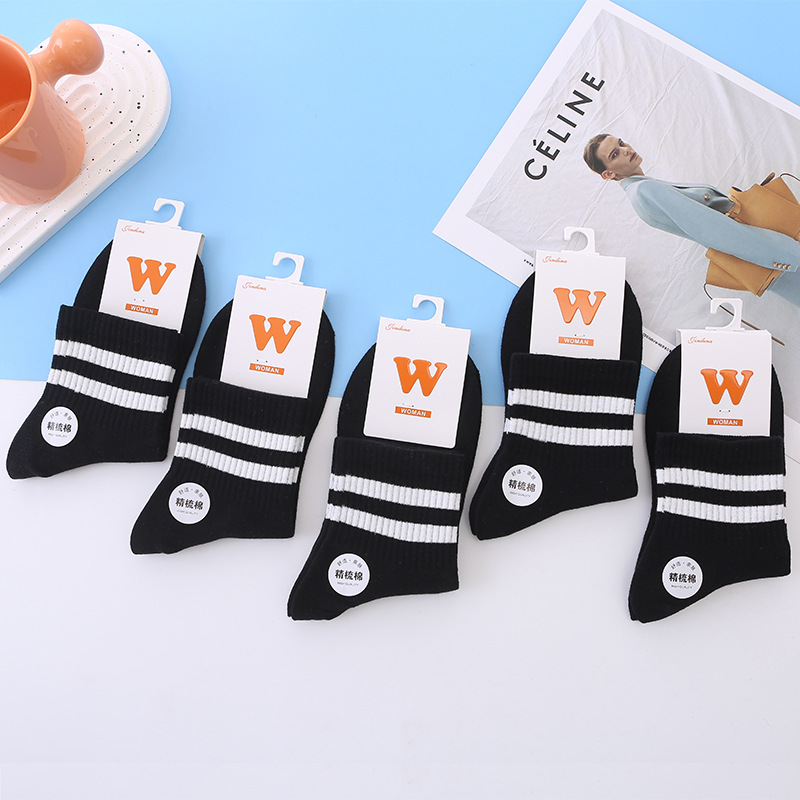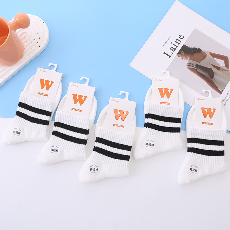 공장 도매 단색 양말 어린이 양말 한국 가을과 겨울 두 막대 흑백 평행 막대 야구 빗질면 양말스토어 가기