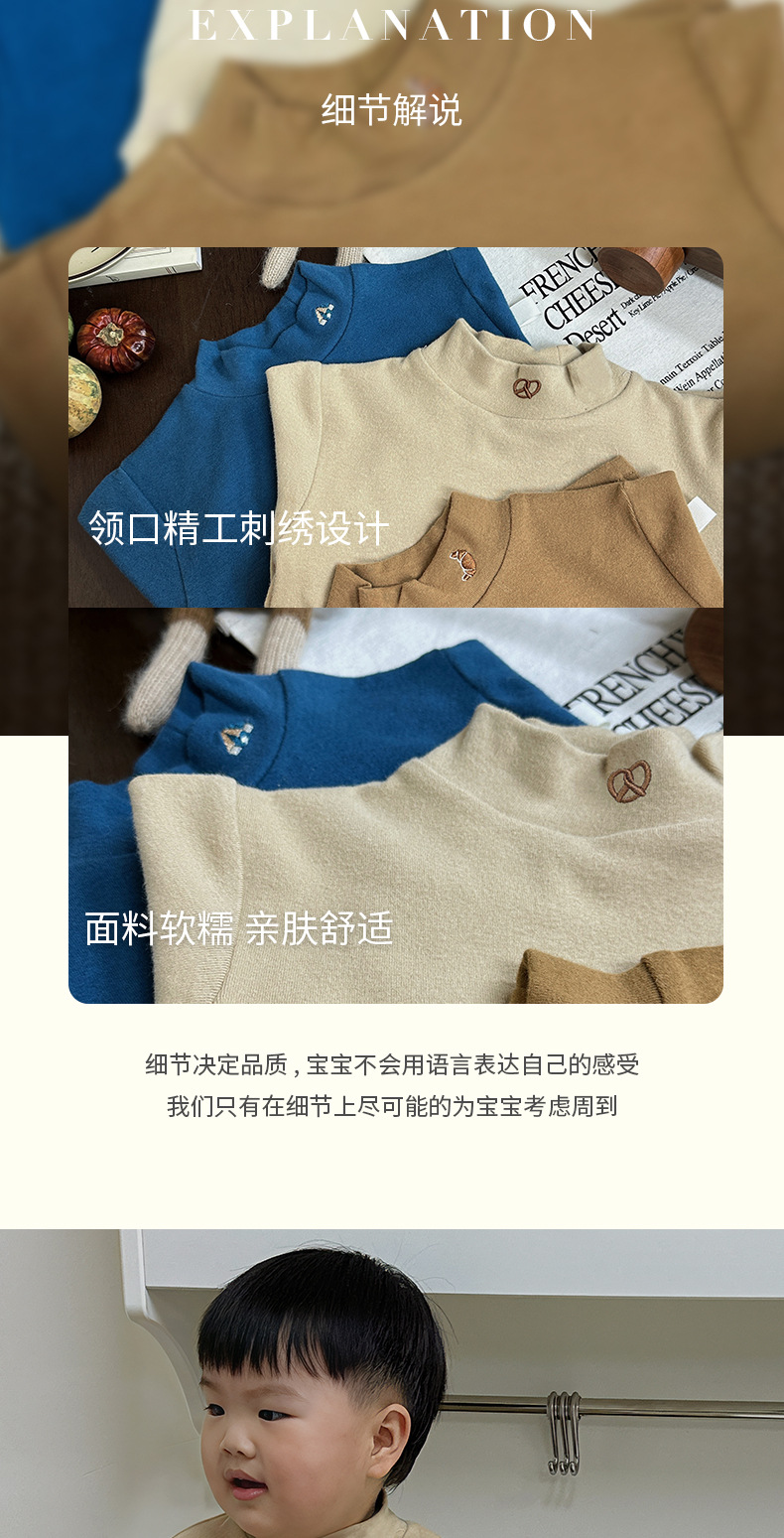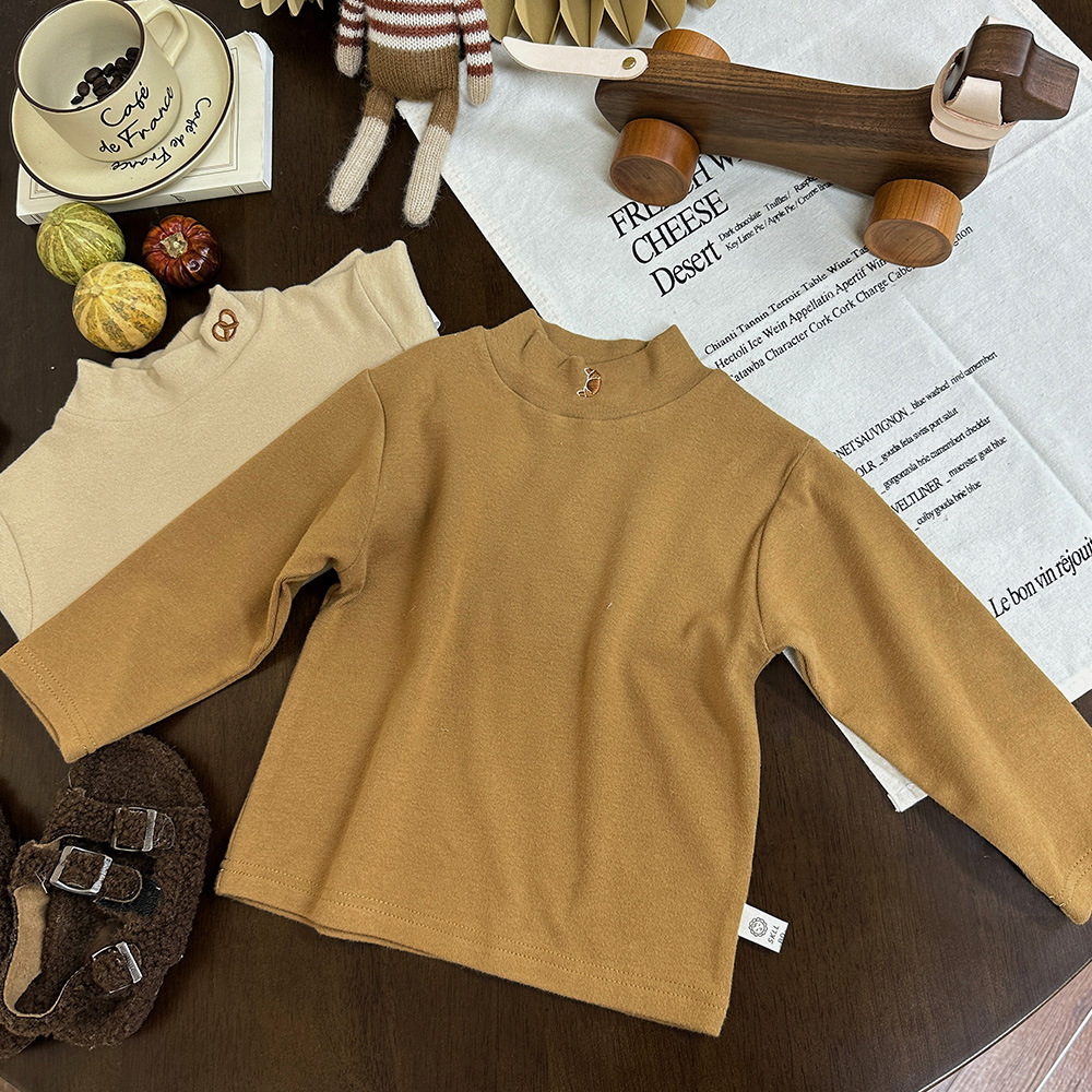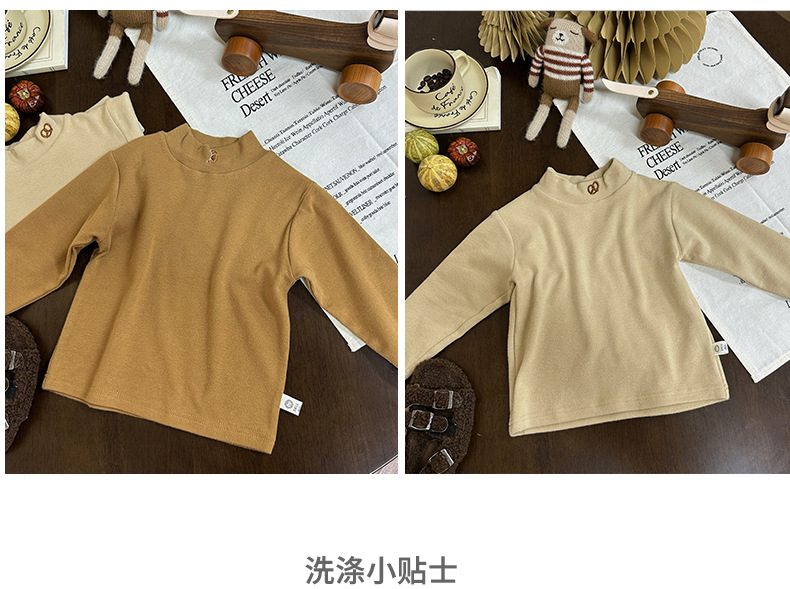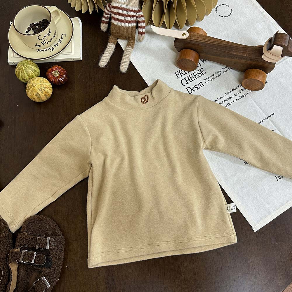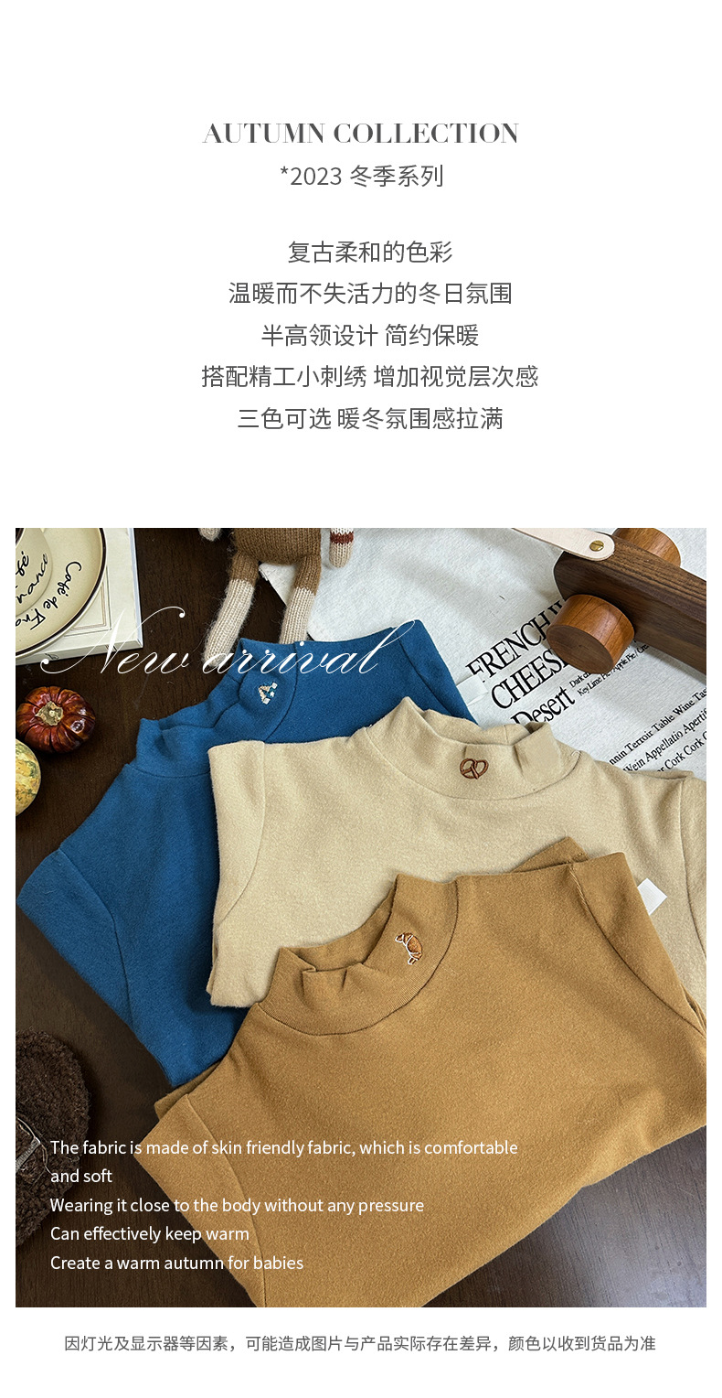 겨울 2023 새로운 어린이 라운드 넥 니트 탑 한국 올 매치 베이스 셔츠 자수 탄성 따뜻한 아동복