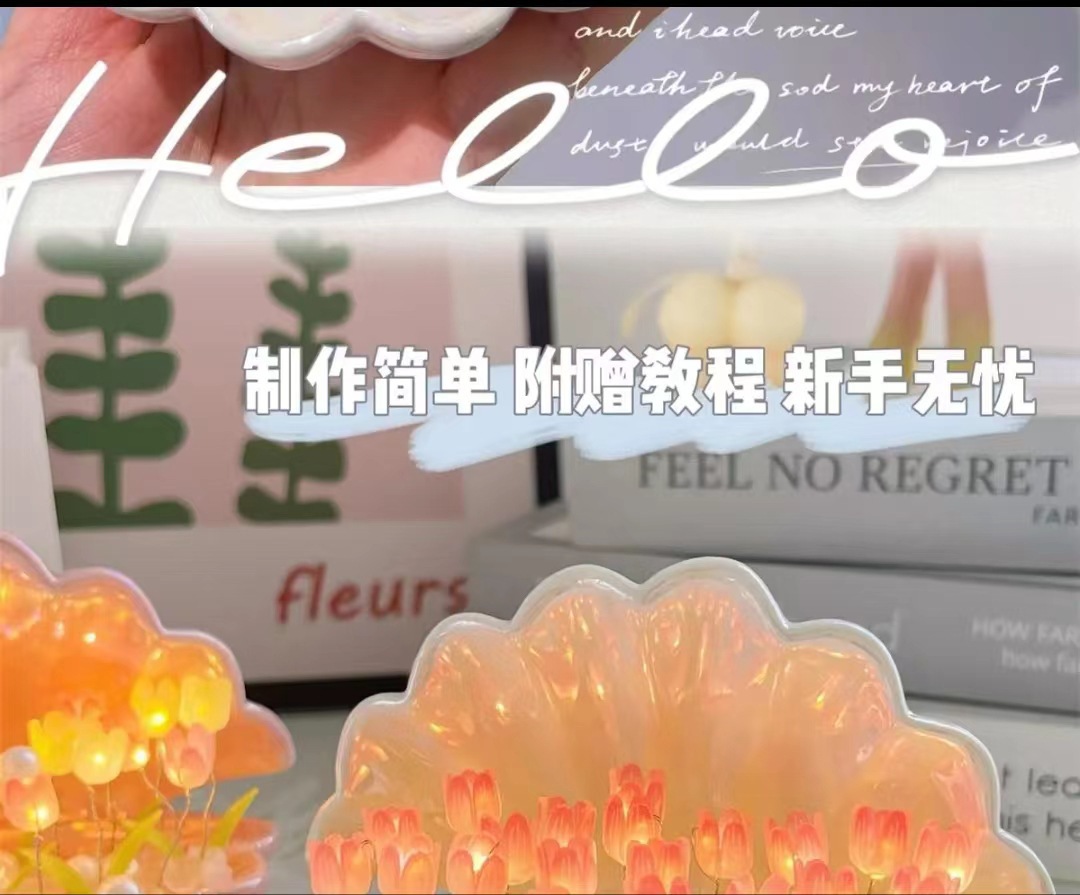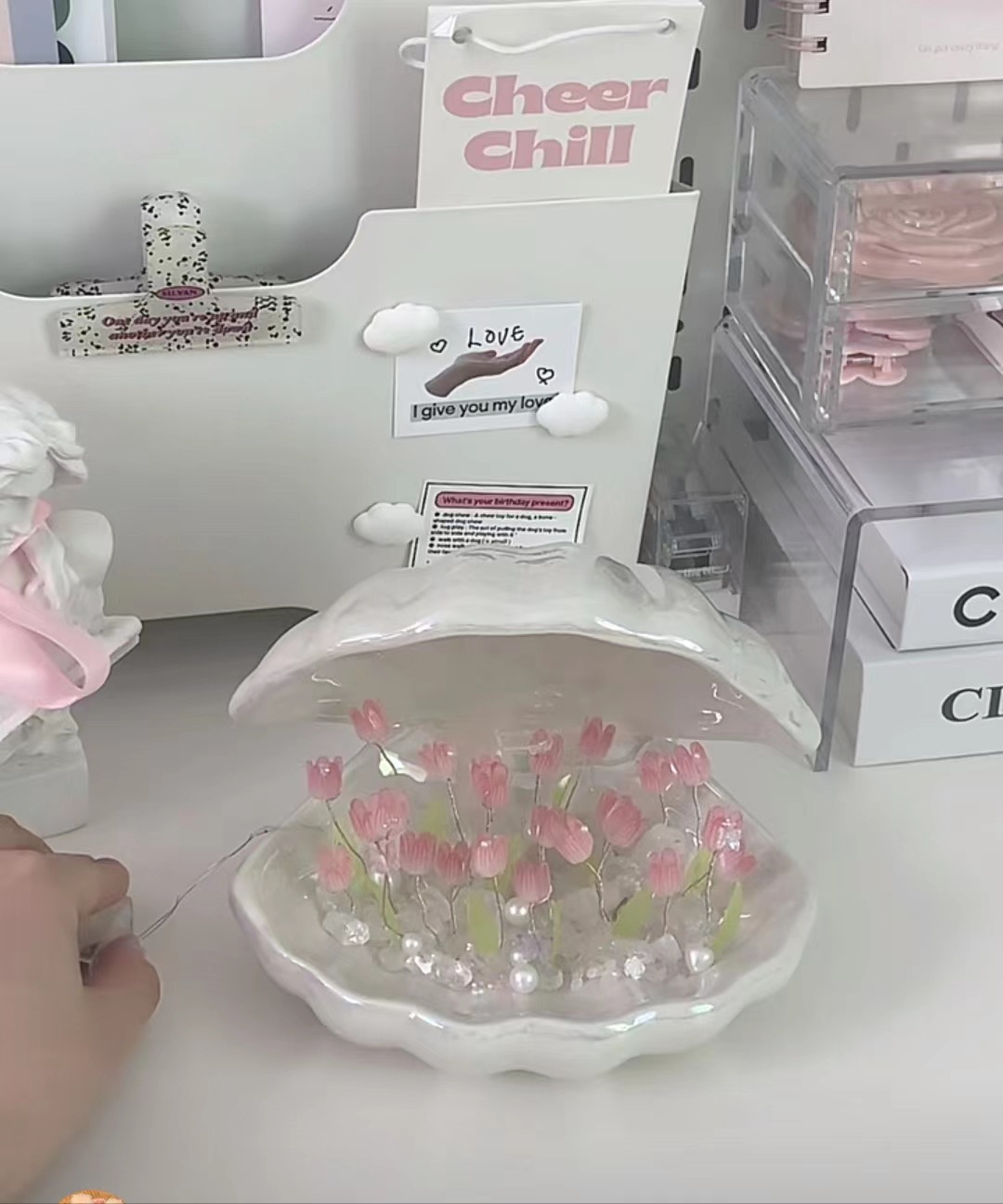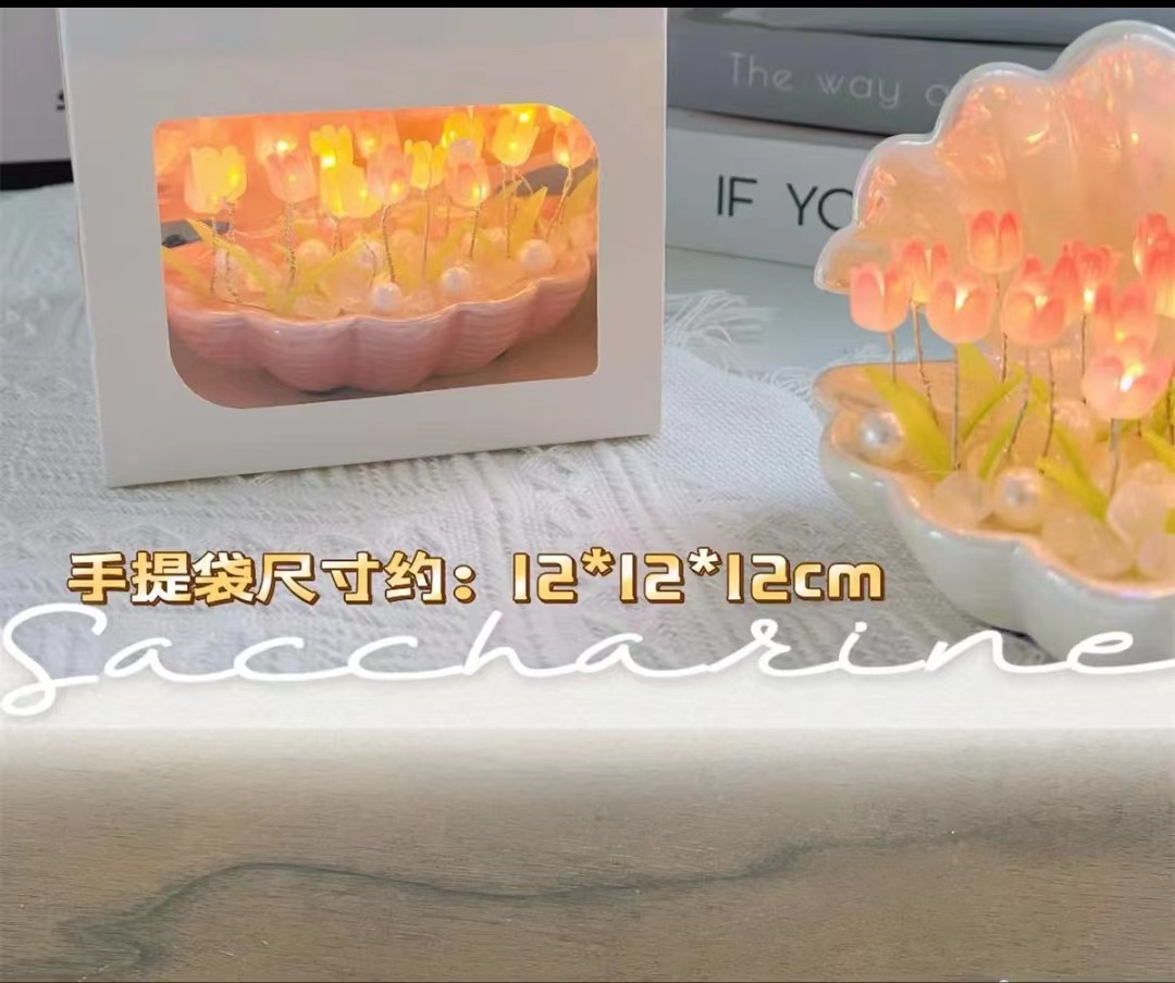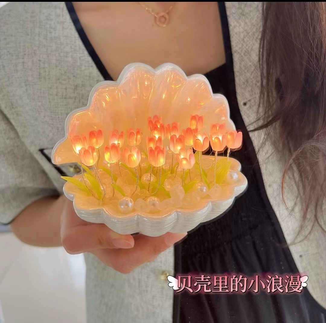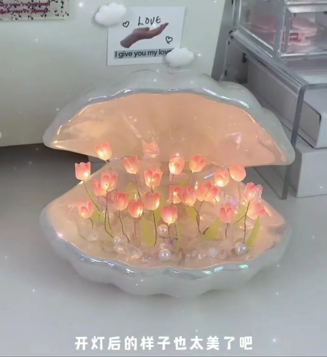 抖音同款手工diy贝壳郁金香小夜灯 创意礼品床头柜氛围灯发光摆件