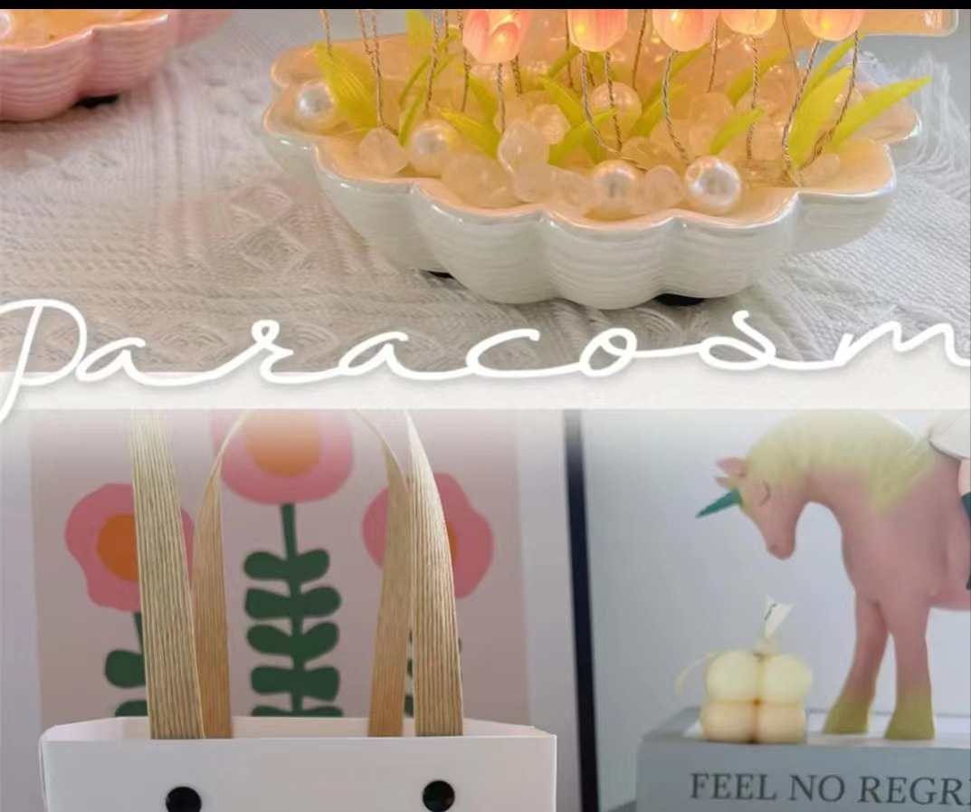 • 핑크 세라믹 쉘 20 핑크 튤립 야간 조명 [풀 패키지] + 윈도우 선물 가방