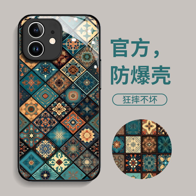 아이폰 13 전화 케이스 14Pro 레트로 토템 15Pro 맥스 심플 8 올인클루시브 11 유리 12Pro 보호 케이스