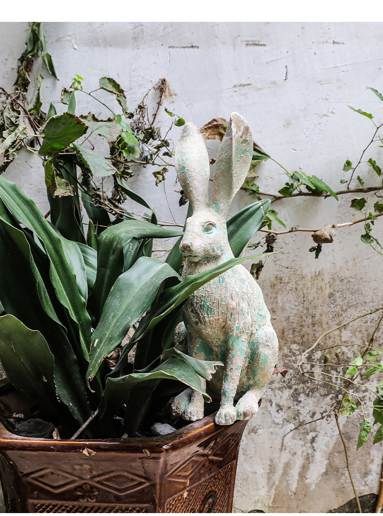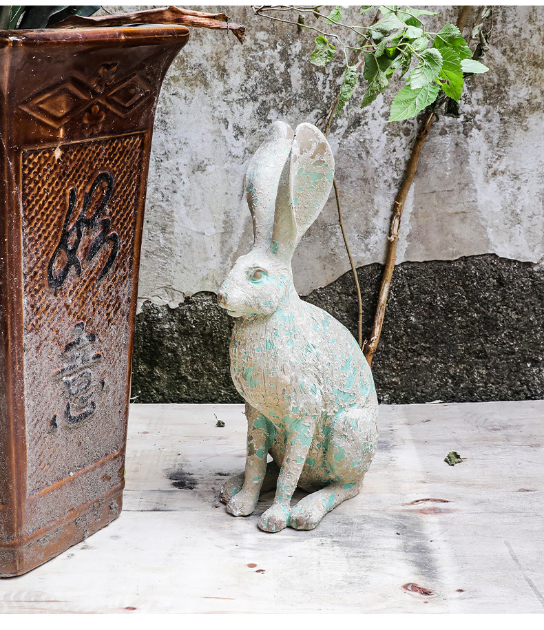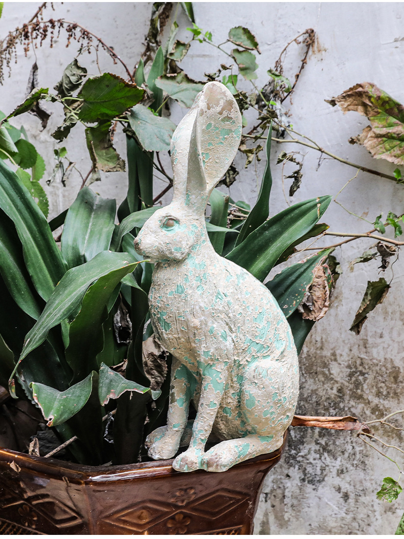 북유럽 스타일 오래 된 수지 긴 귀 토끼 동물 장식 장식품 거실 데스크탑 선물 간단한 빈티지 공예스토어 가기