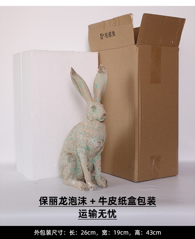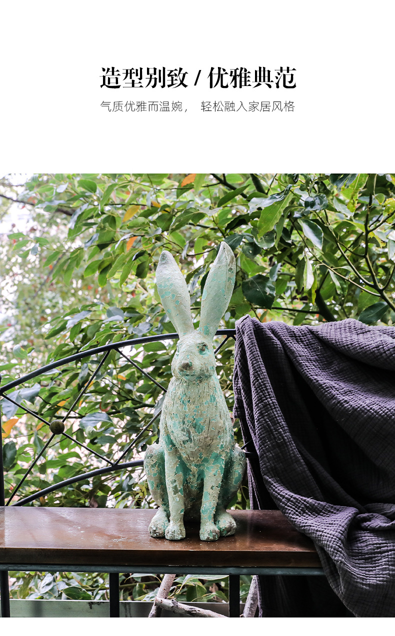 북유럽 스타일 오래 된 수지 긴 귀 토끼 동물 장식 장식품 거실 데스크탑 선물 간단한 빈티지 공예