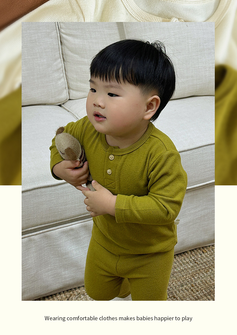 겨울 2023 어린이 기모 배꼽 보호 속옷 세트 아기 소년 소녀 바디 핏 기본 가정 옷 따뜻한 분할