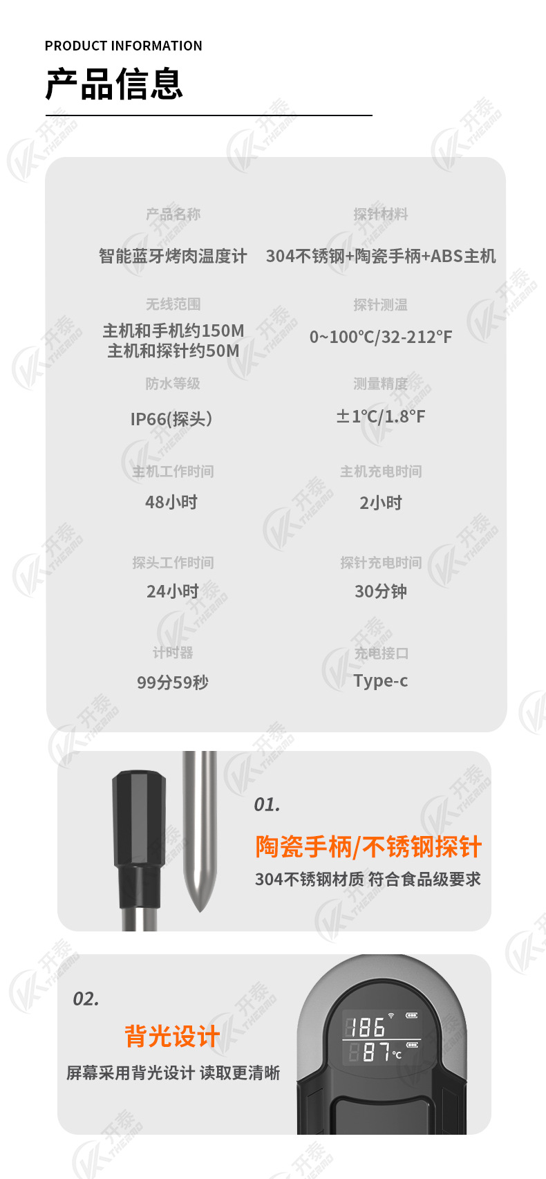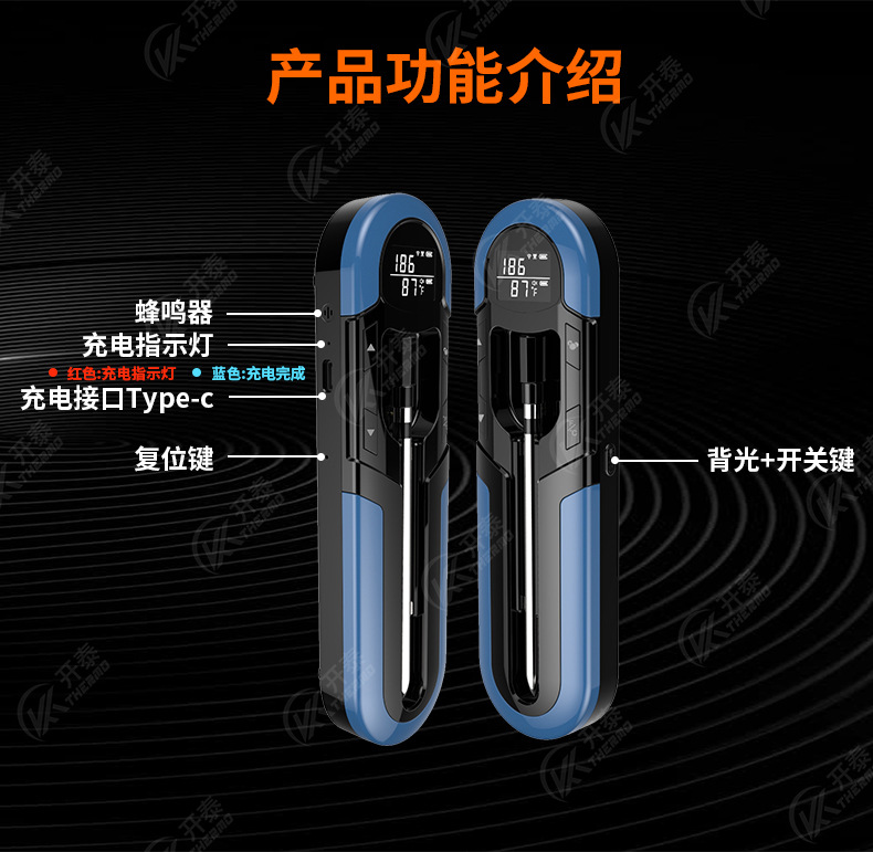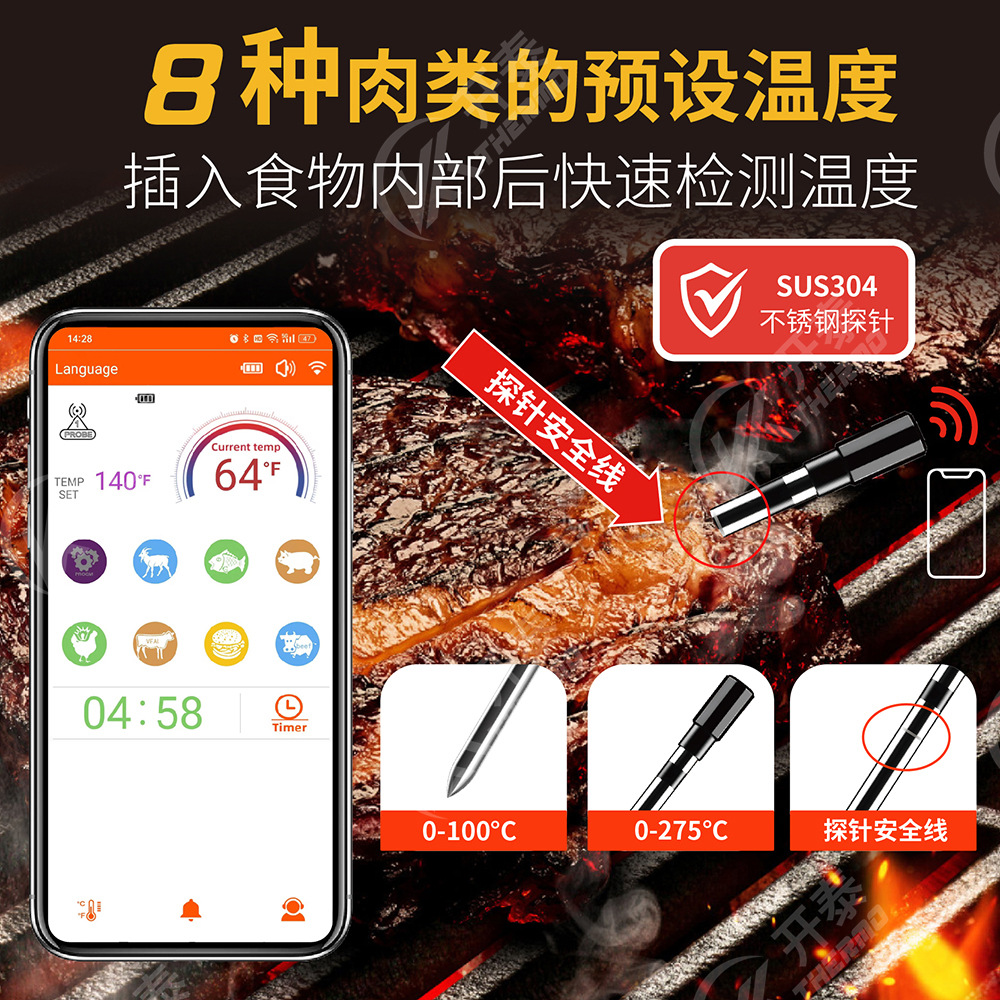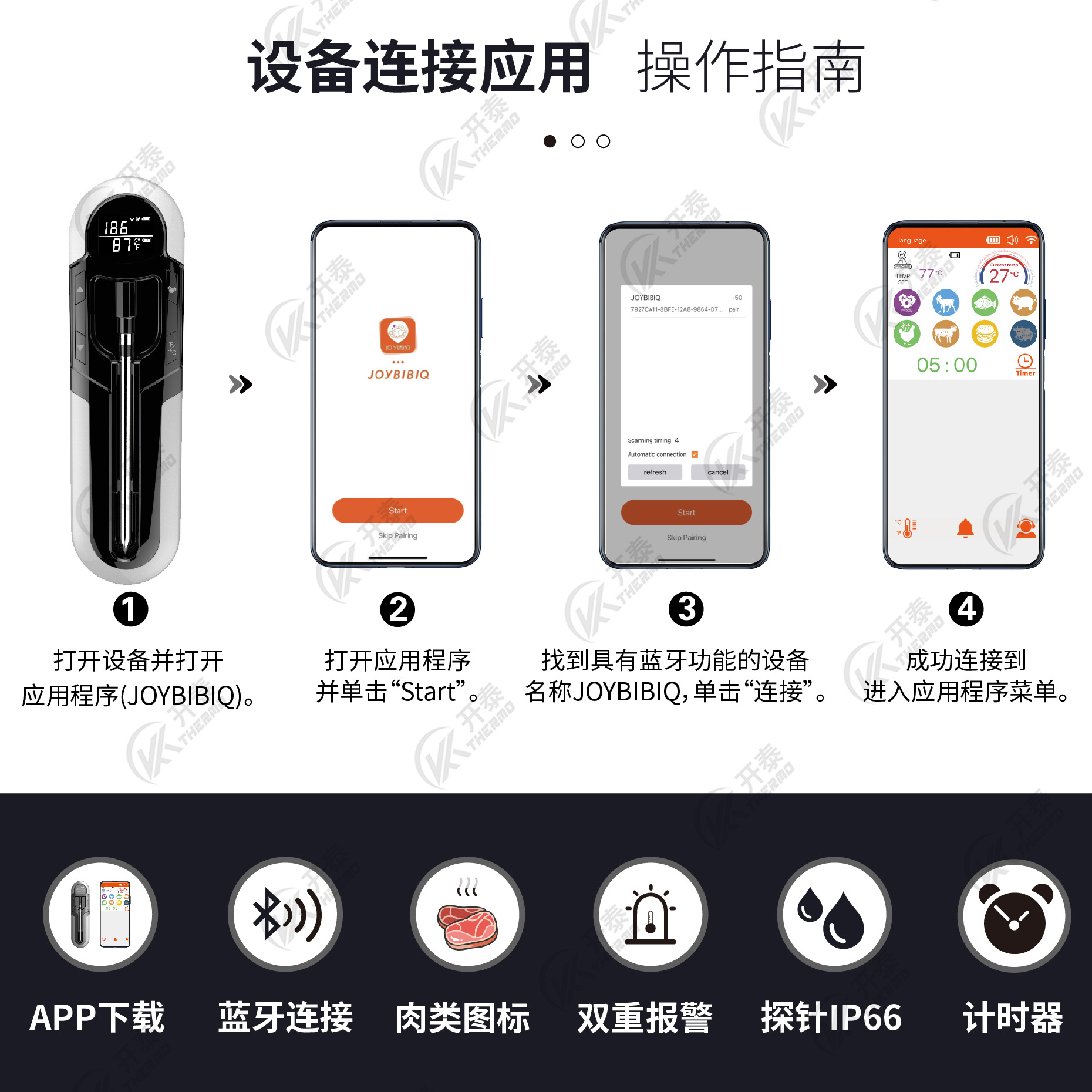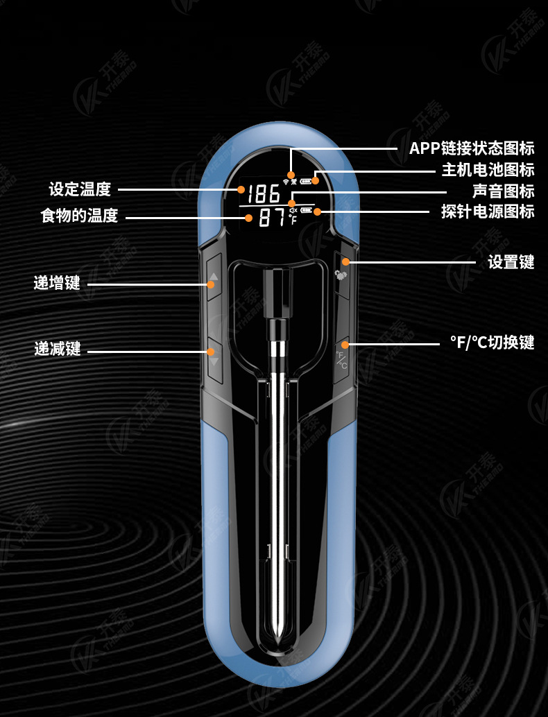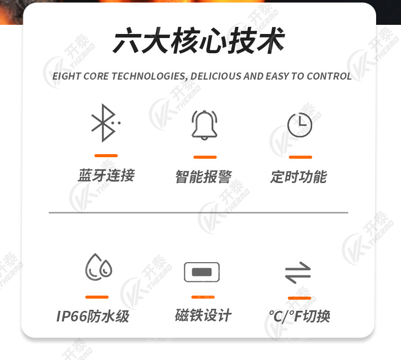 六大核心技术:蓝牙连接、智能报警、定时功能、IP66防水级、磁铁设计、°C/°F切换