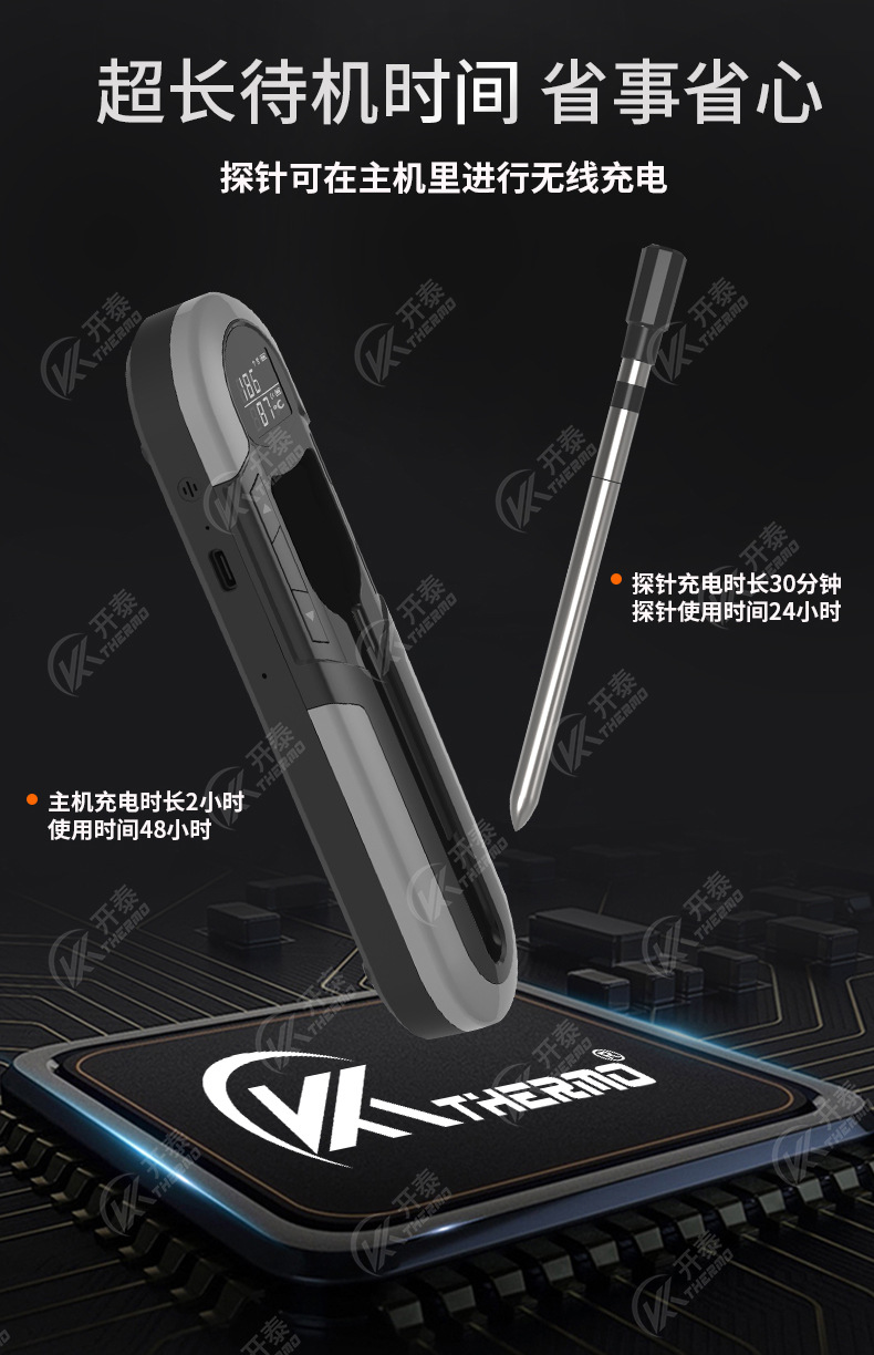 探头规格:蓝牙 LE 5.2 无线连接距离 50-150m(取决于环境,6m 关闭盖子,100m 畅通无阻