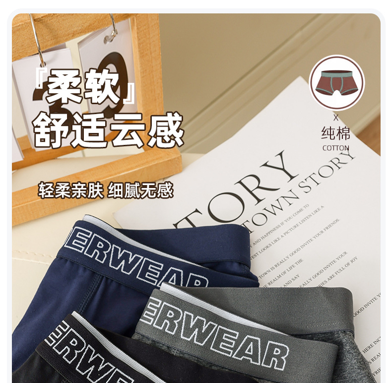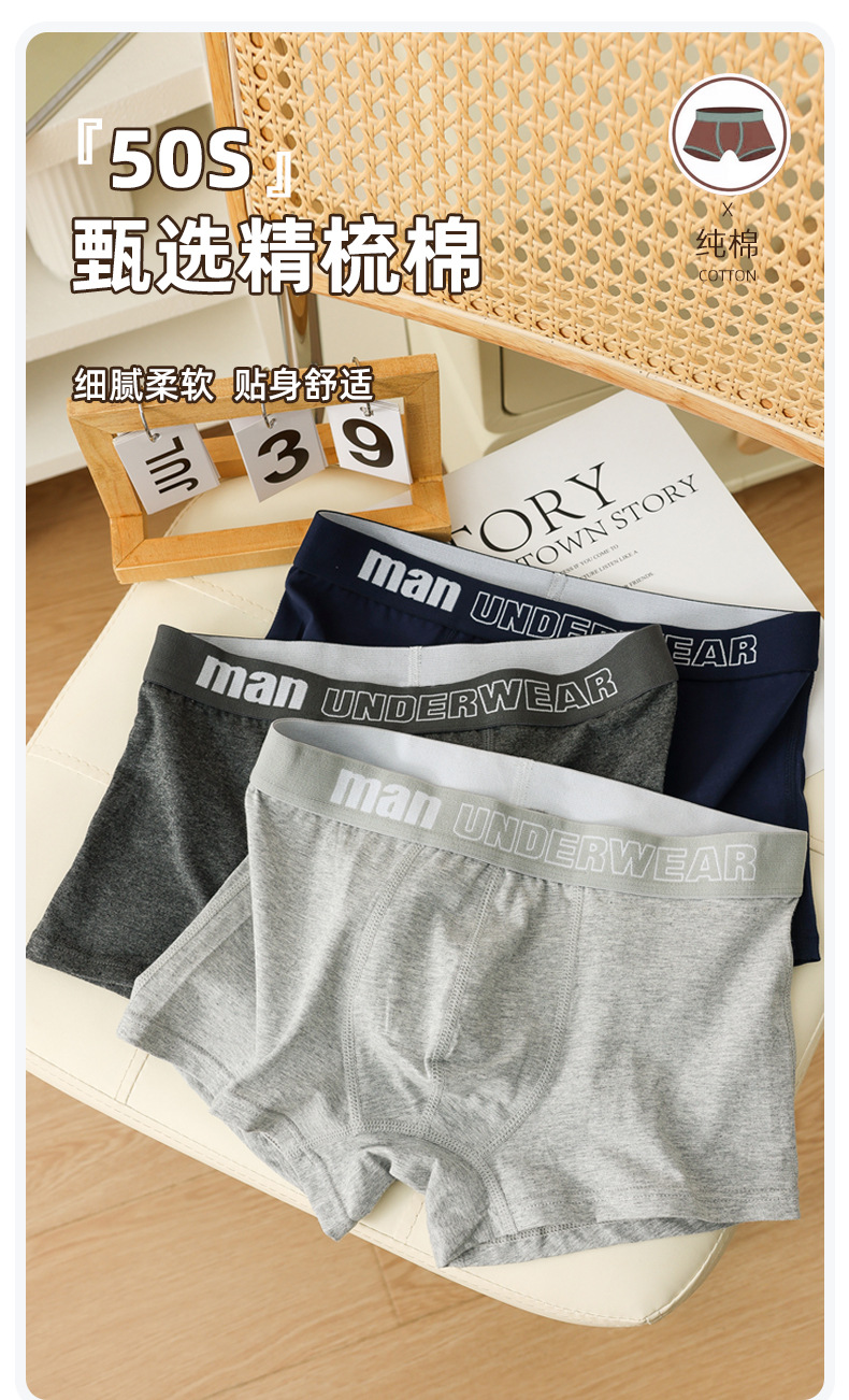 남성 속옷 순면 미드 웨이스트 솔리드 컬러 복서 팬티 남성 반바지 미드 웨이스트 유럽과 미국 남성 트렌디 팬티 남성용 속옷스토어 가기