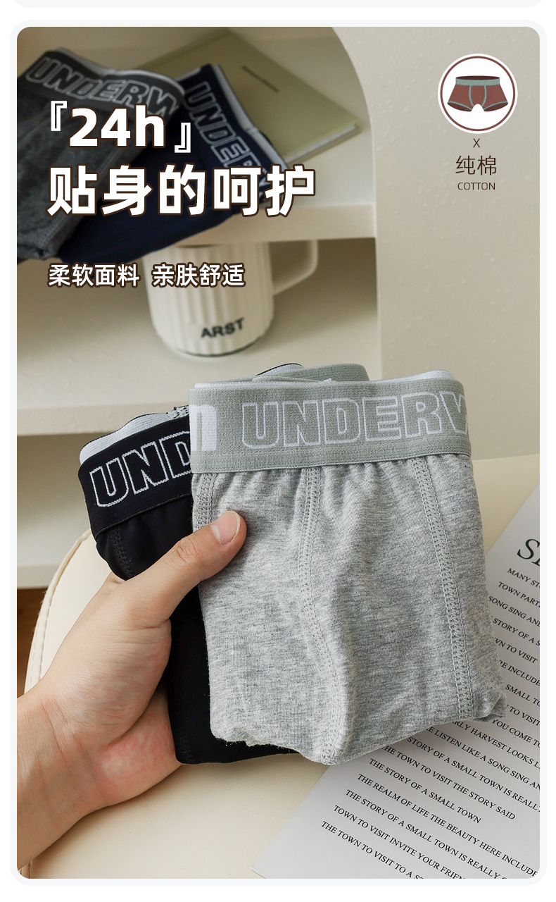 남성 속옷 순면 미드 웨이스트 솔리드 컬러 복서 팬티 남성 반바지 미드 웨이스트 유럽과 미국 남성 트렌디 팬티 남성용 속옷