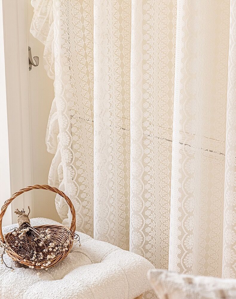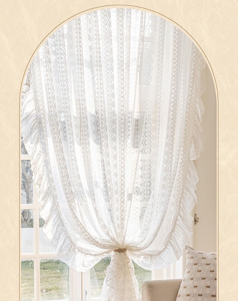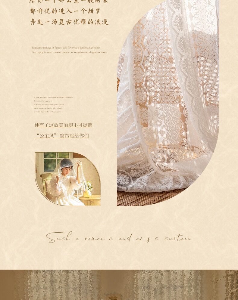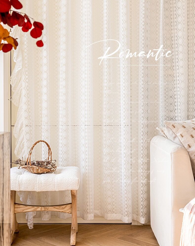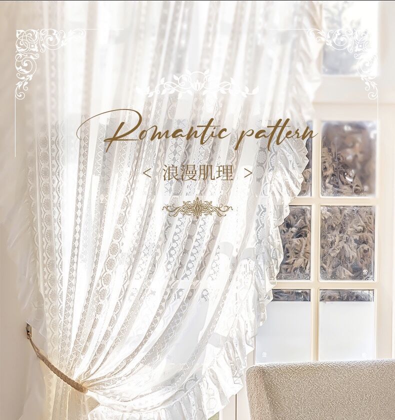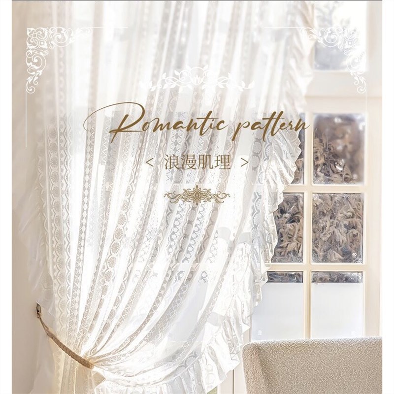 크로스보더 프렌치 스타일 반투명 레이스 커튼, 거실과 침실용 고급 인스 스타일 완제품 장식 커튼스토어 가기