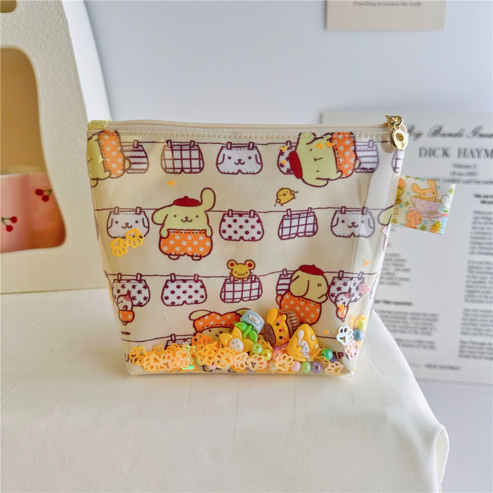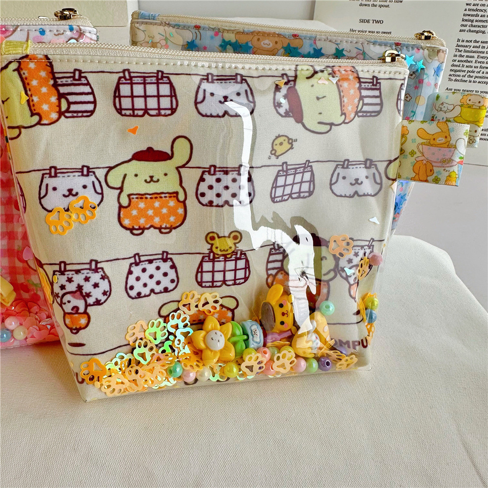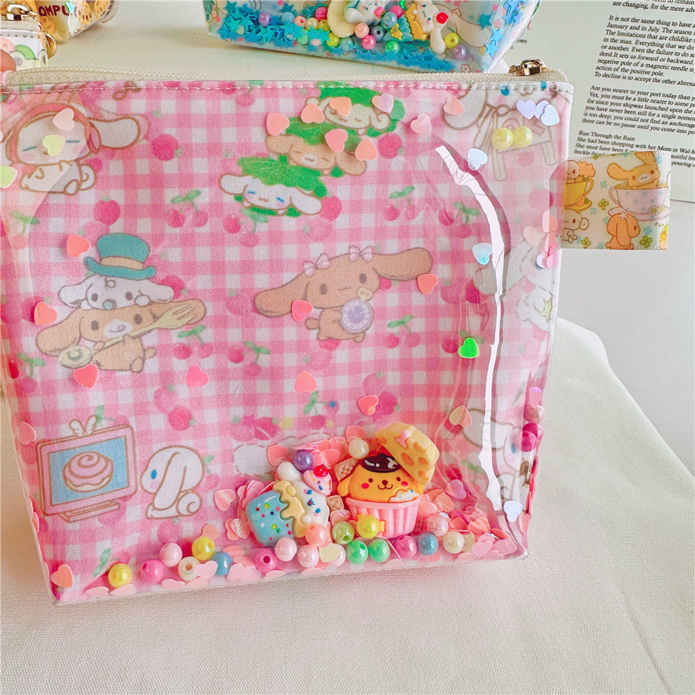 귀여운 만화 인쇄 옥 계피 투명 tpu quicksand 화장품 가방 보관 가방 공장 도매스토어 가기