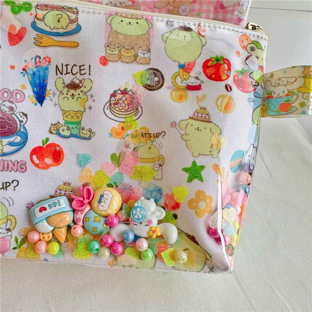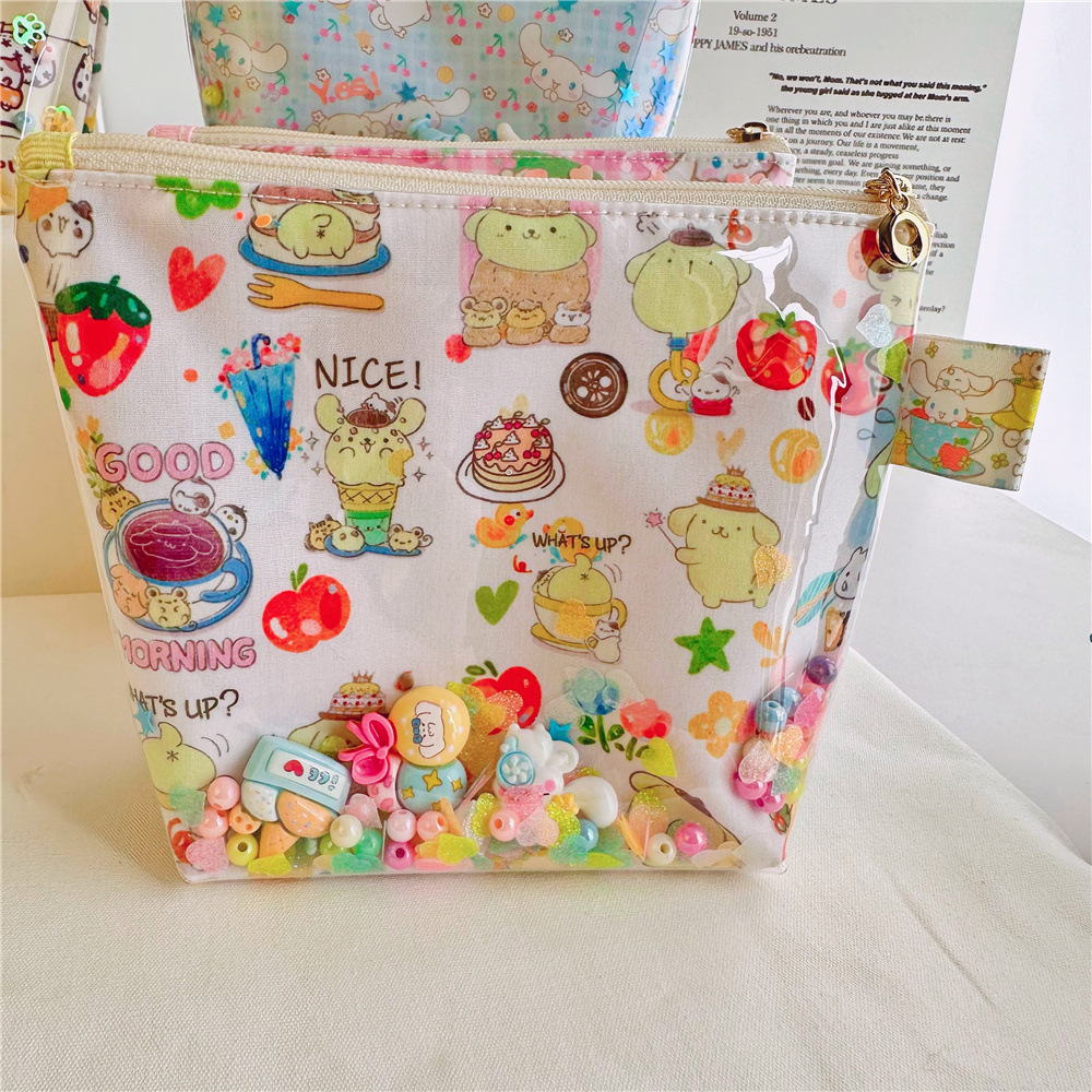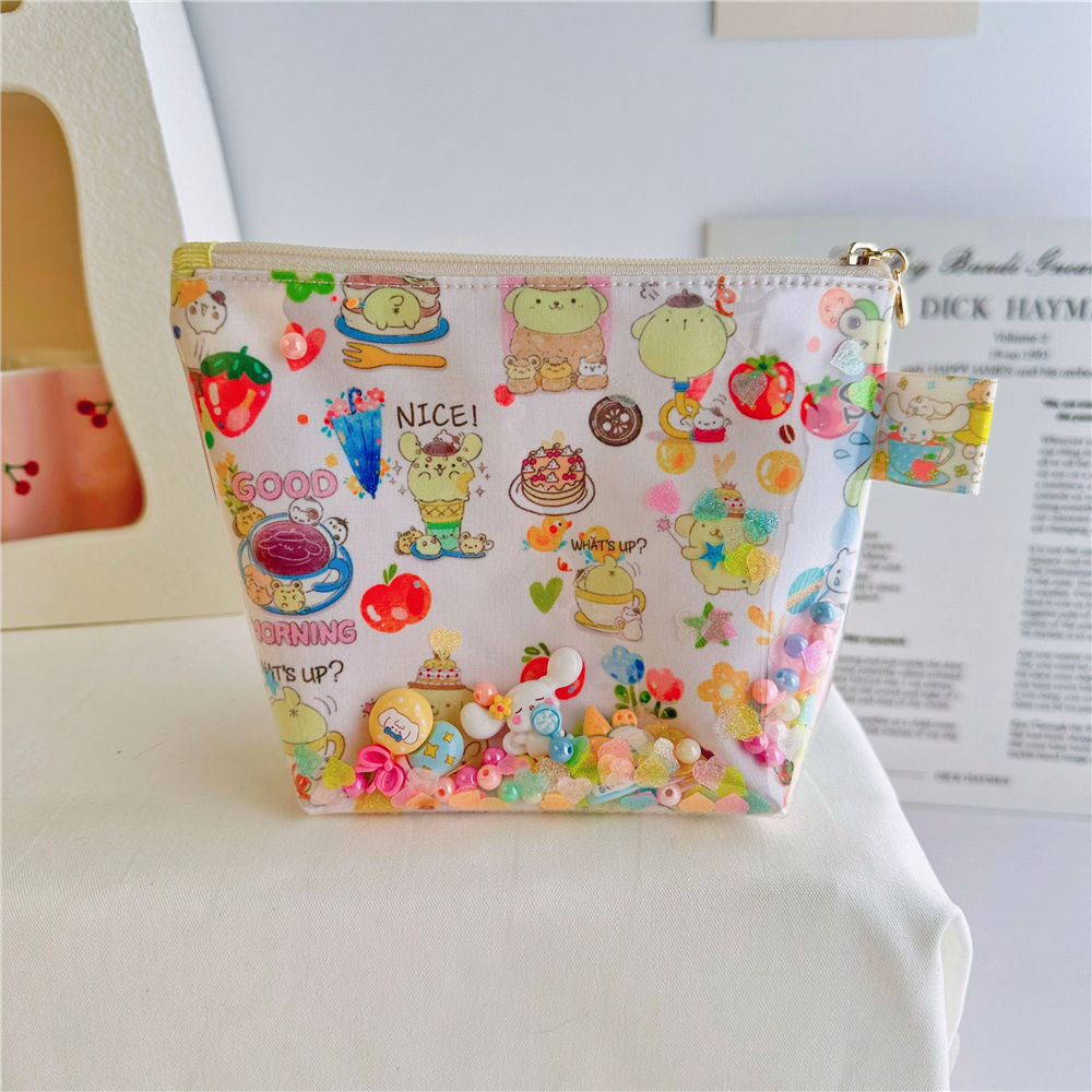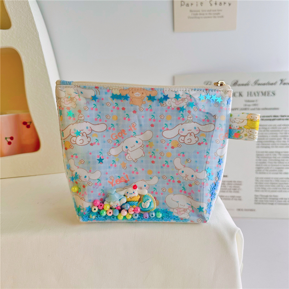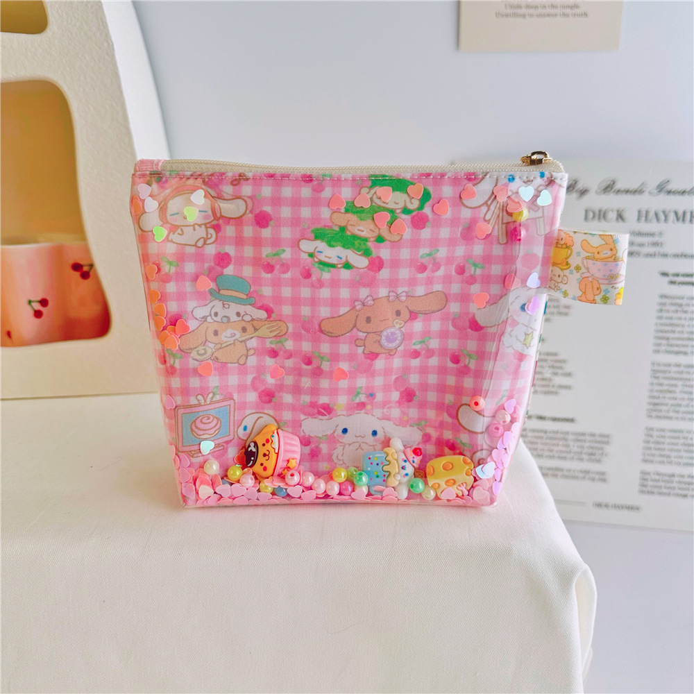 귀여운 만화 인쇄 옥 계피 투명 tpu quicksand 화장품 가방 보관 가방 공장 도매