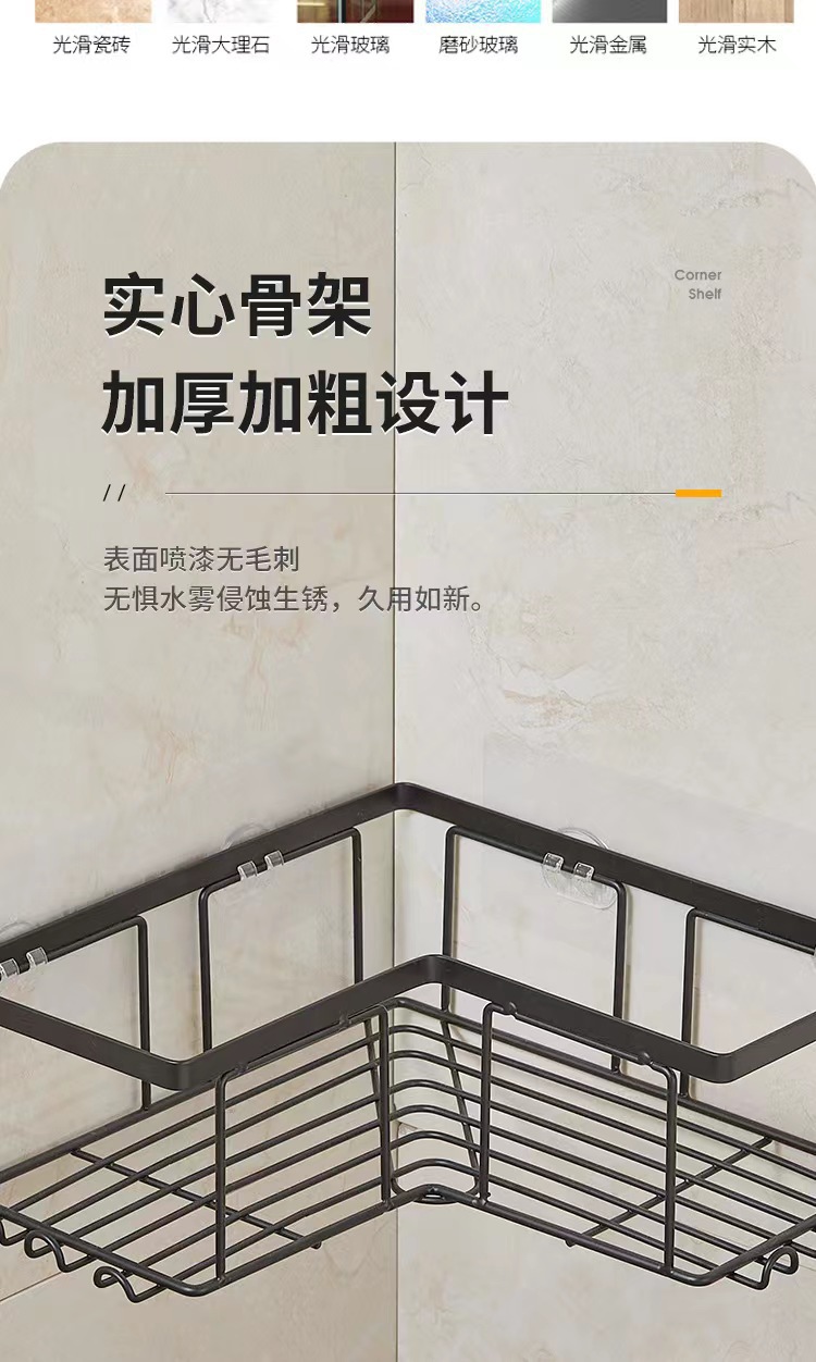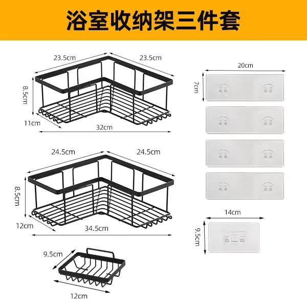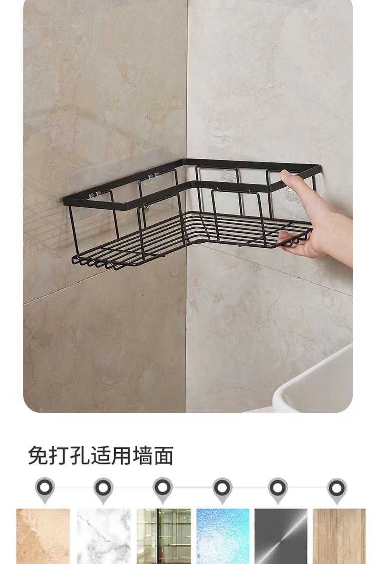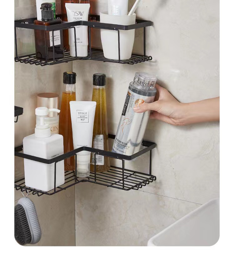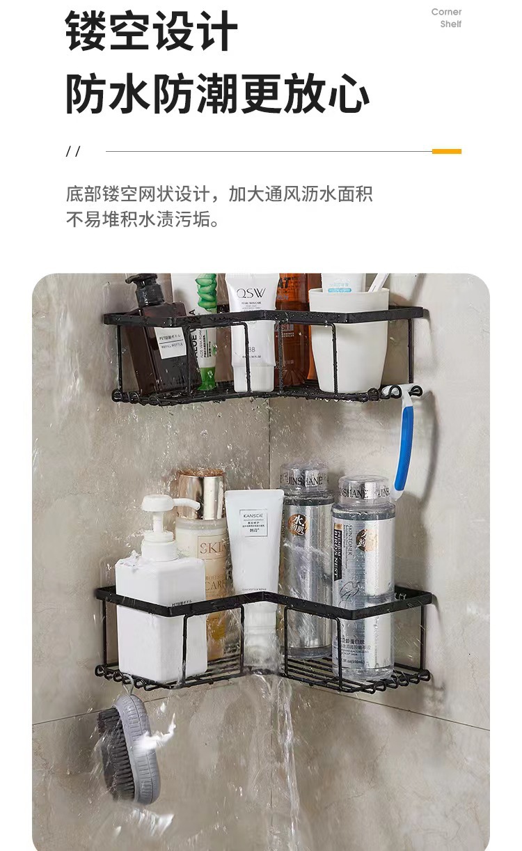 욕실용 무타공 삼각 선반, 화장실 무타공 코너 수납 벽걸이 철제 삼각 선반, 해외 직구