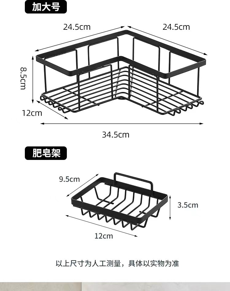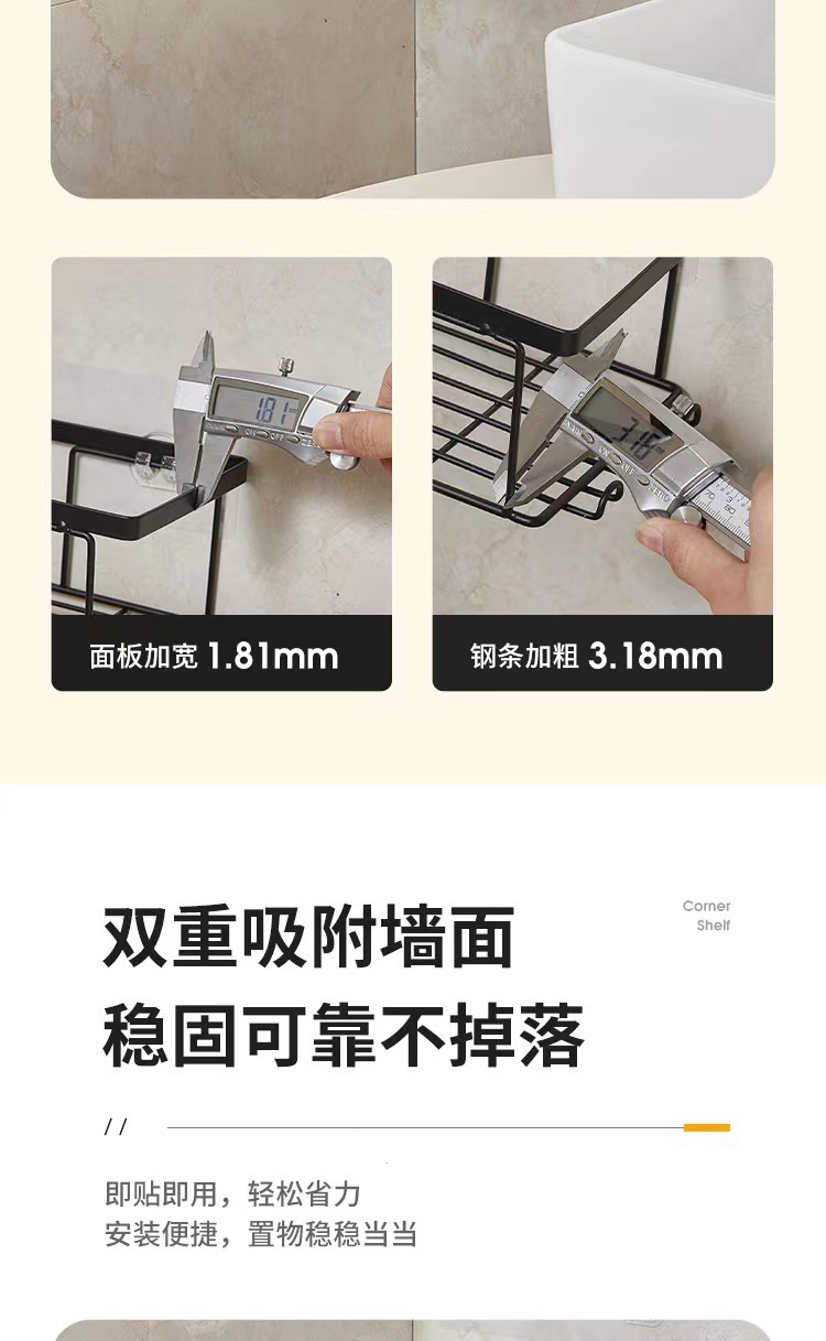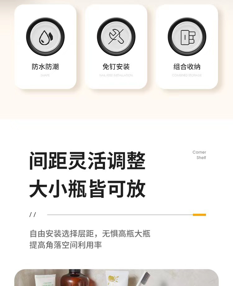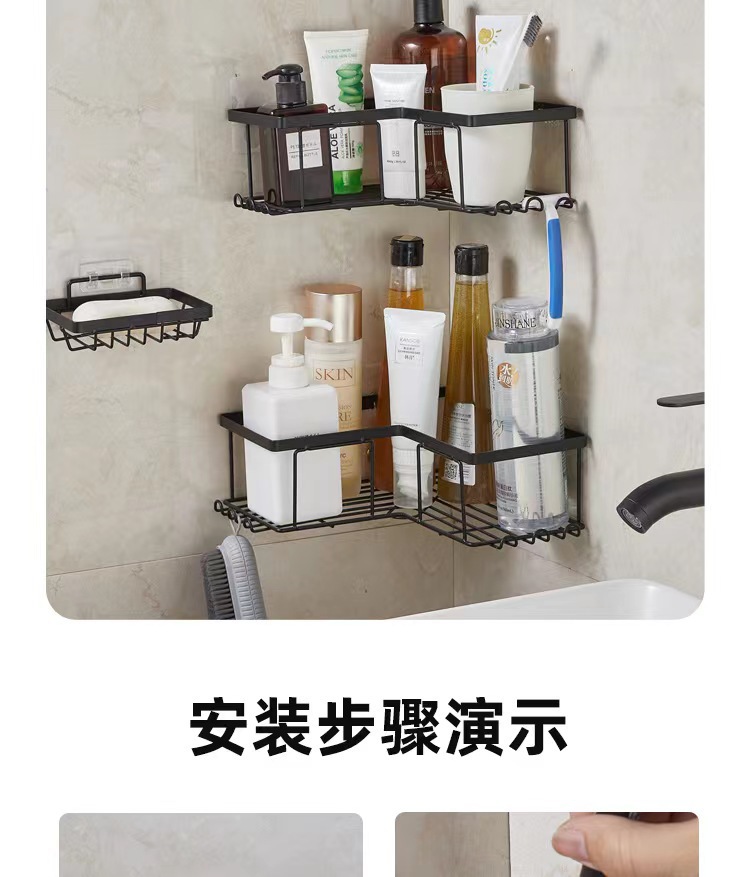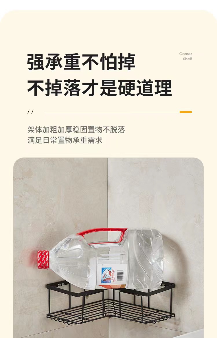 욕실용 무타공 삼각 선반, 화장실 무타공 코너 수납 벽걸이 철제 삼각 선반, 해외 직구