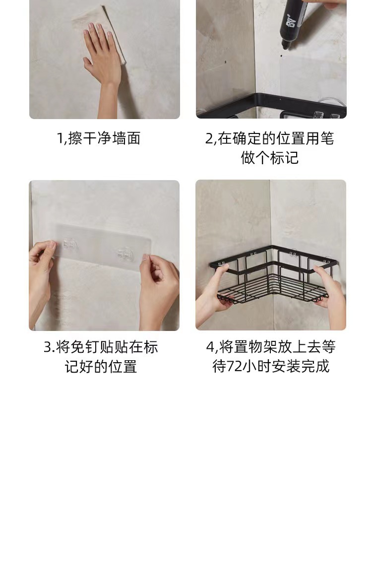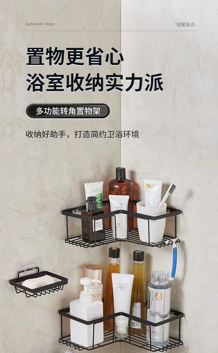 욕실용 무타공 삼각 선반, 화장실 무타공 코너 수납 벽걸이 철제 삼각 선반, 해외 직구스토어 가기