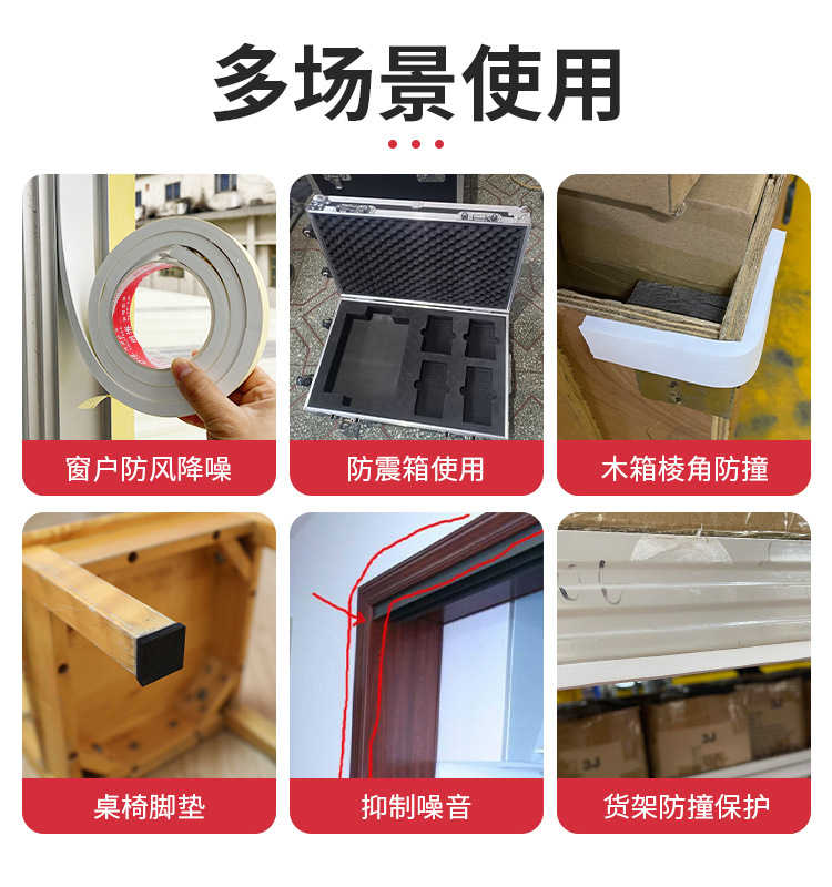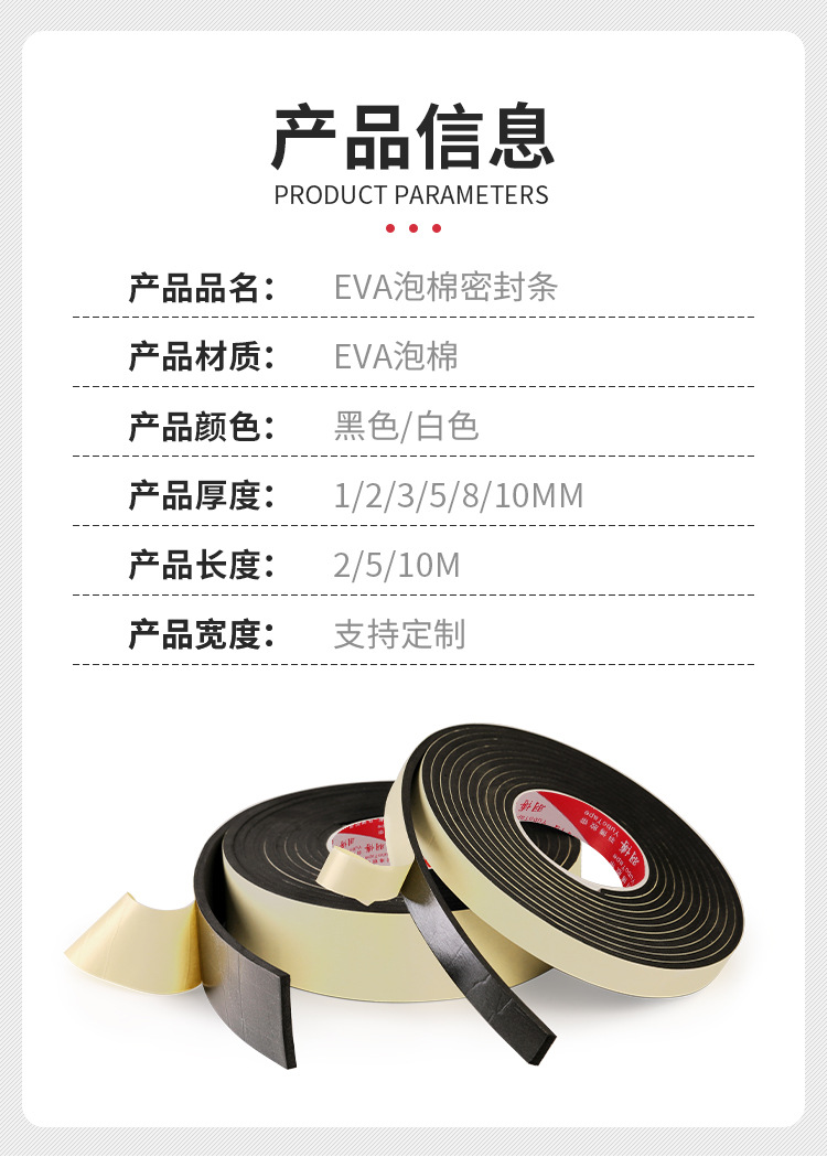 EVA 단면 폼 테이프 테이블과 의자 용 충돌 방지 밀봉 스트립 두꺼운 방음 및 소음 감소 스펀지 테이프 도어 및 Windows 용