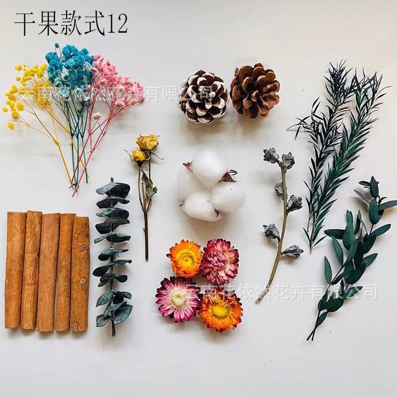 크리스마스 말린 과일 재료 가방 DIY 화환 재료 말린 꽃 불멸의 꽃 아로마 테라피 양초 재료 사진 프레임 장식스토어 가기