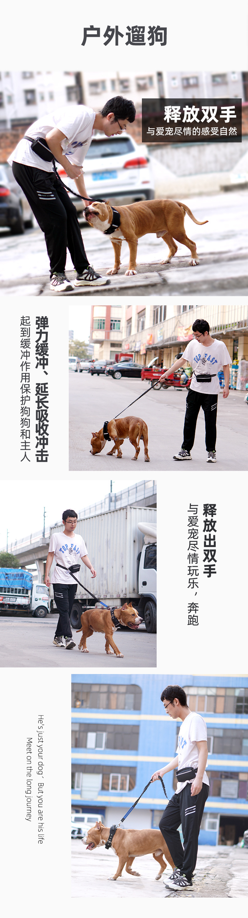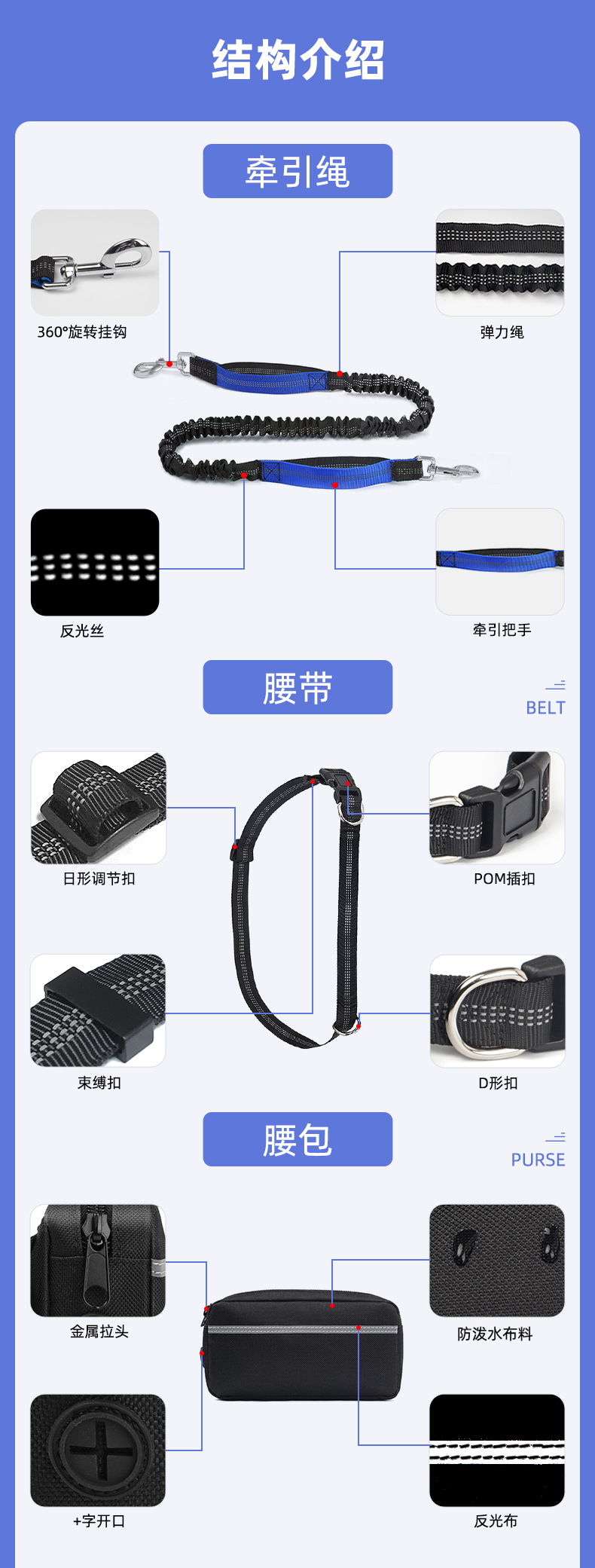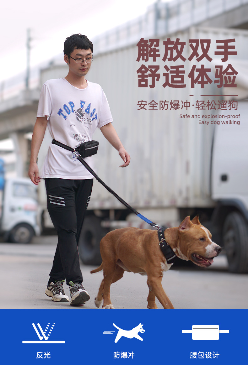2025 국경 간 인기 다기능 허리 가방 애완 동물 세트 개 산책 및 달리기 나일론 반사 개 개폐식 견인 로프스토어 가기
