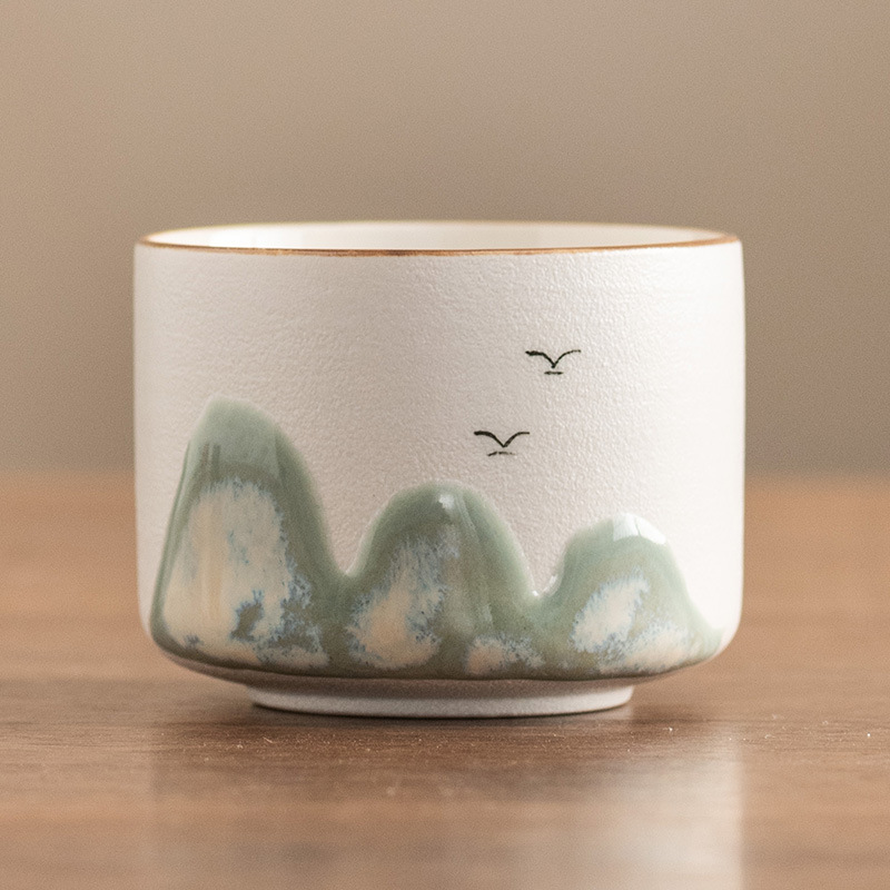 크리 에이 티브 파 마운틴 쿵푸 찻잔 차 시음 컵 세라믹 마스터 컵 단일 컵 도자기 컵 작은 찻그릇 개인 찻잔