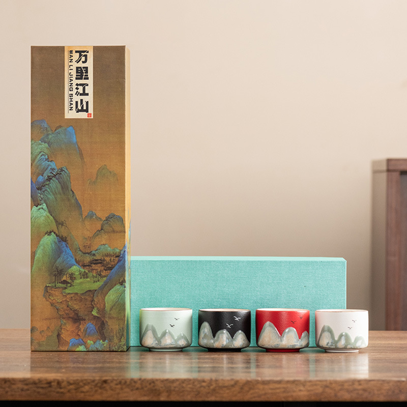 • 손으로 그린 Yuanshan 4 컵 선물 상자