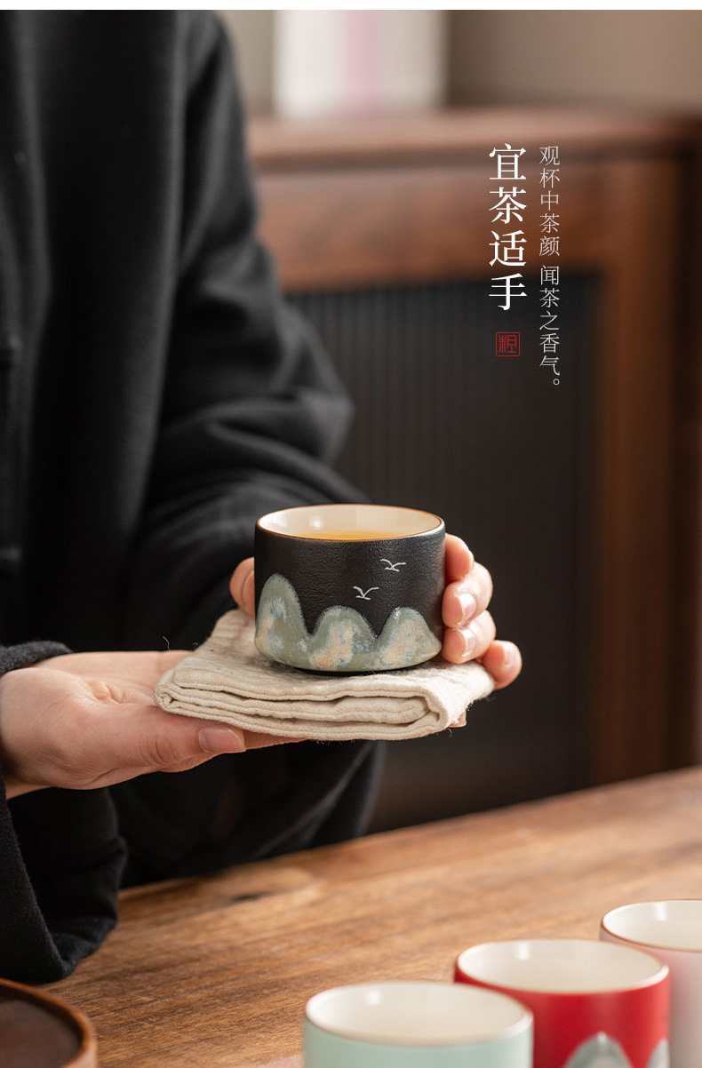 크리 에이 티브 파 마운틴 쿵푸 찻잔 차 시음 컵 세라믹 마스터 컵 단일 컵 도자기 컵 작은 찻그릇 개인 찻잔스토어 가기