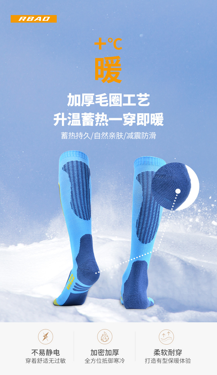 가을 겨울 신상품 남녀공용 긴 튜브 스키 등산 양말, 두꺼운 테리 밑창 보온 양말 RB3341스토어 가기