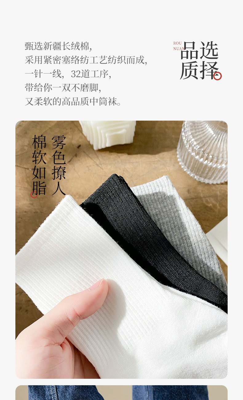 [재고] Zhuji 양말 남자와 여자 양말 가을과 겨울 면화 흰색 양말 여자 양말 봄과 가을 스타킹