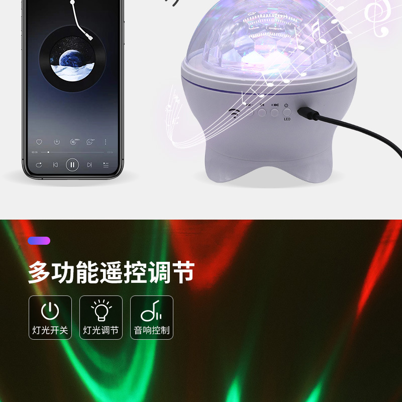 새로운 회전식 조명 분위기등 침실 블루투스 스피커 무대 조명 리모컨 다채로운 조명 DIY 야간등 창의적