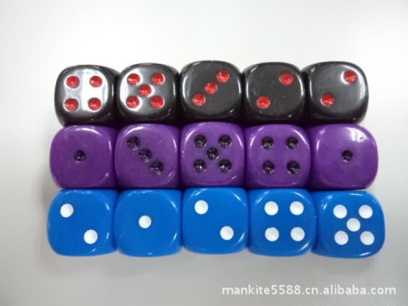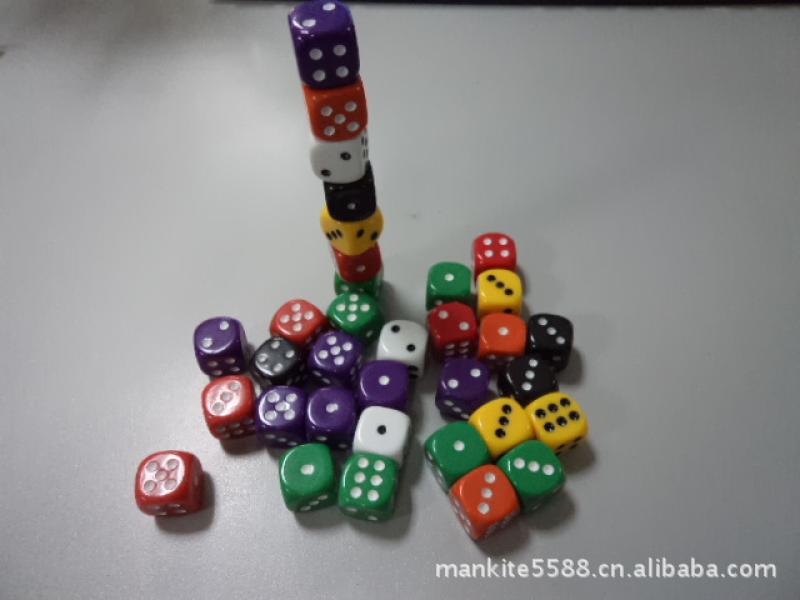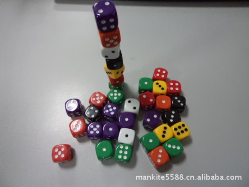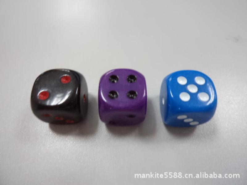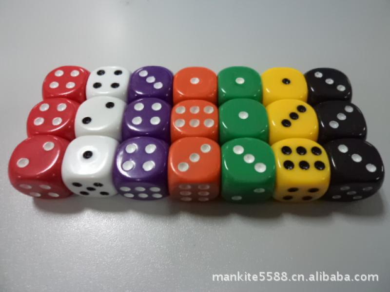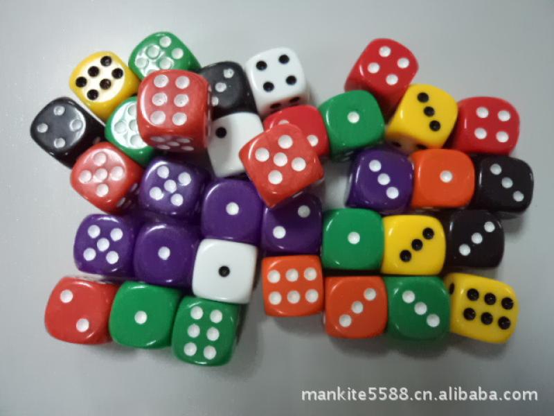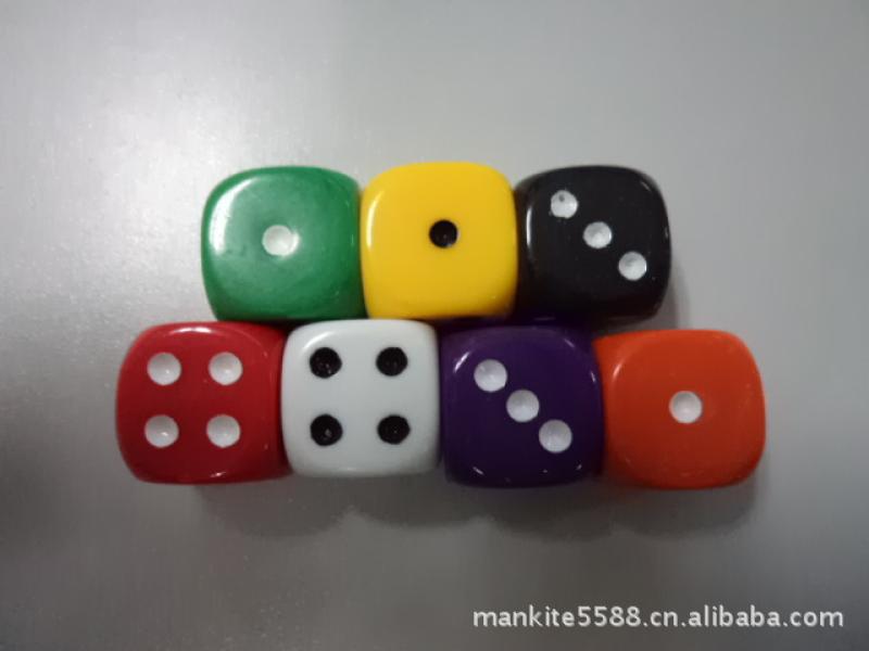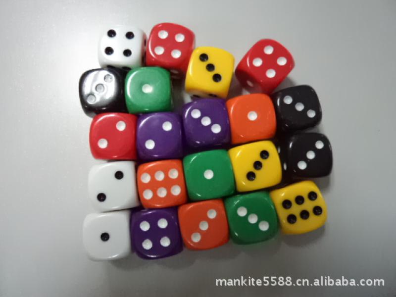本厂大量供应骰子、骰盅和筹码,骰子规格为8mm-30mm,点数骰子,光板骰子(12#,16#,18#,20#,22#,25#,30#,#即是MM),多面骰子(4面,6面,8面,10面,12面,20面),可根据买家不同的需求订做不同的规格,颜色,提供注塑或板材切割生产制造,采用国际标准无毒油漆点漆,材料和产品符合环保质量标准,本厂规模大,实力雄厚,月产量达500万粒,已有十多年的骰子生产经验,欢迎各商业人士到本厂参观!