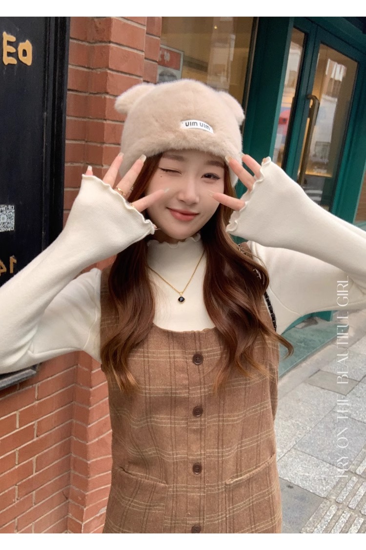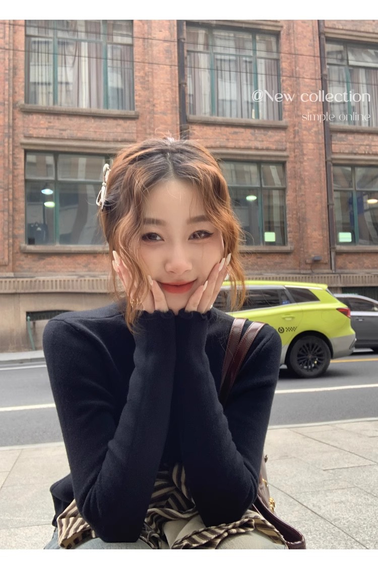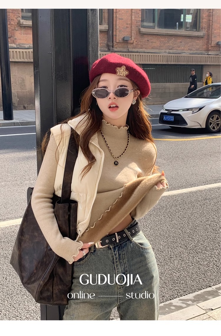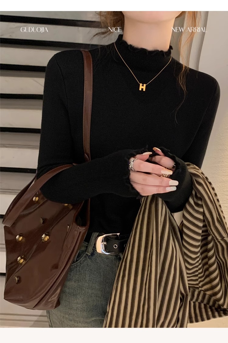 스웨터 여성의 가을과 겨울 2023 새로운 폭발 흰색 내부 기모 베이스 셔츠 하프 하이 칼라 귀 니트 탑스토어 가기