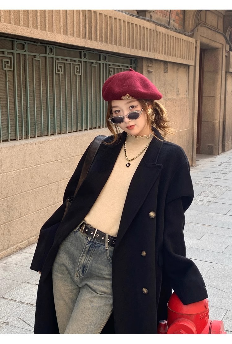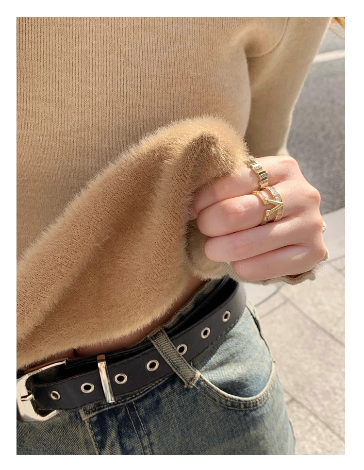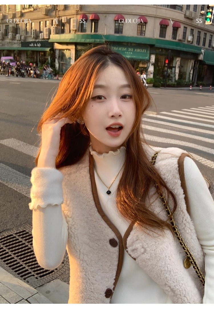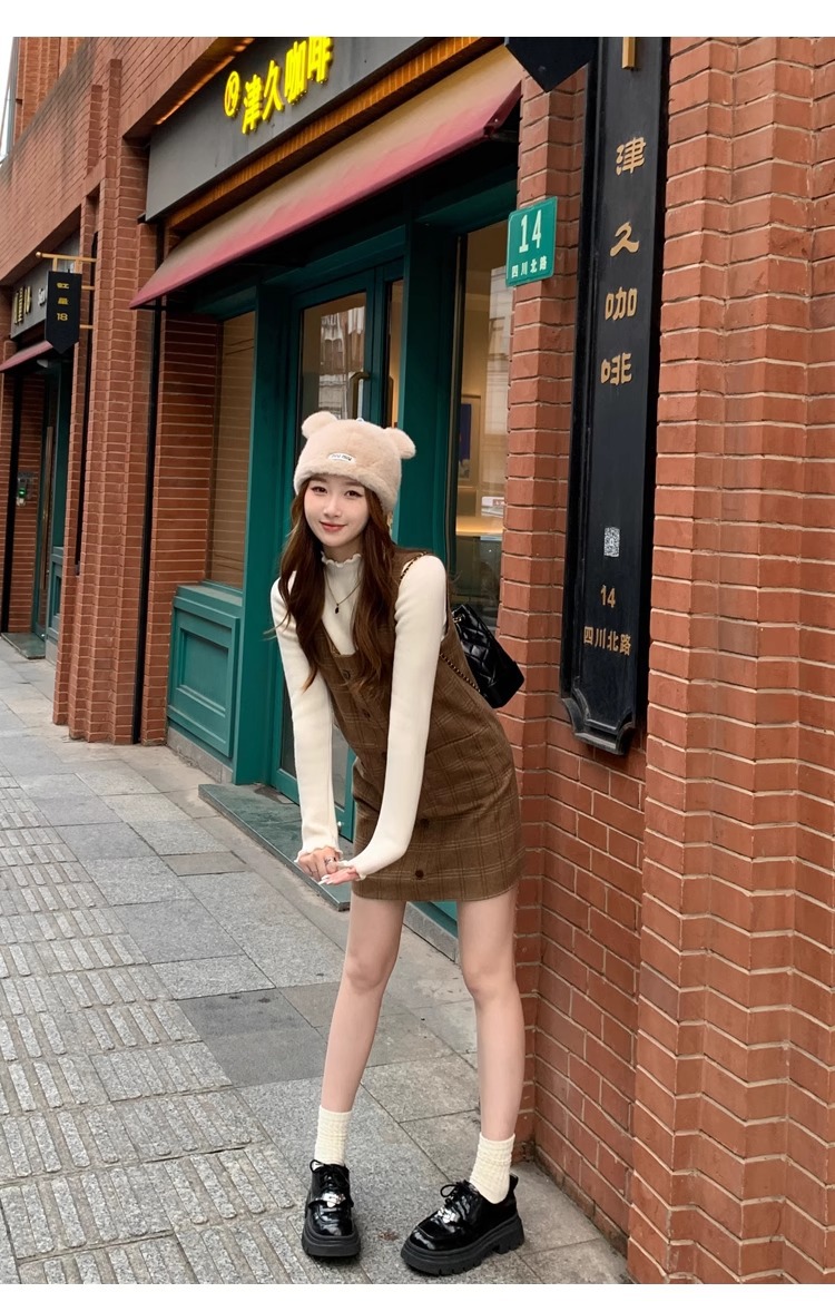스웨터 여성의 가을과 겨울 2023 새로운 폭발 흰색 내부 기모 베이스 셔츠 하프 하이 칼라 귀 니트 탑스토어 가기