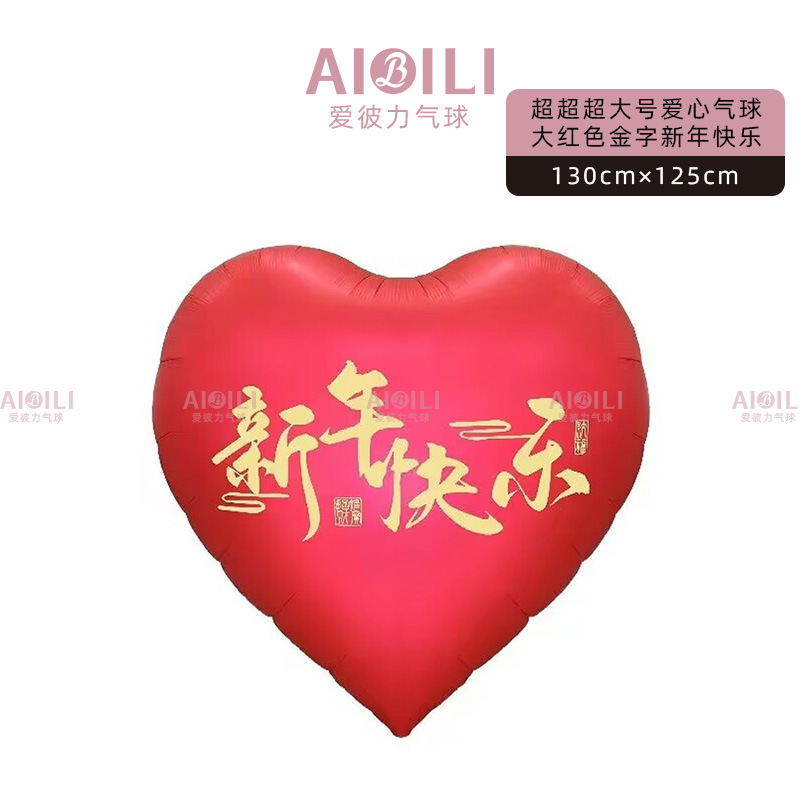 • 큰 빨간색과 금색 글자가 새겨진 초대형 사랑 풍선(새해 복 많이 받으세요)