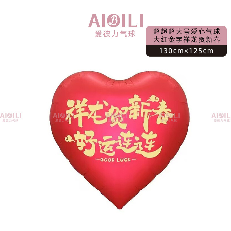 • 빨간색과 금색 글자가 새겨진 초대형 사랑 풍선(Xianglong은 새해 복 많이 받으며 행운을 니다)