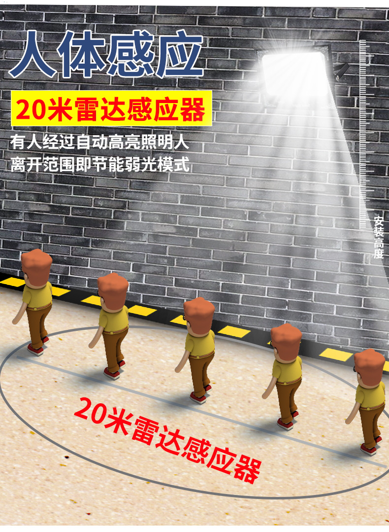 [개인 모델] 새로운 태양 레이더 유도 1 드래그 2 고출력 가정용 방수 야외 안뜰 투광 조명