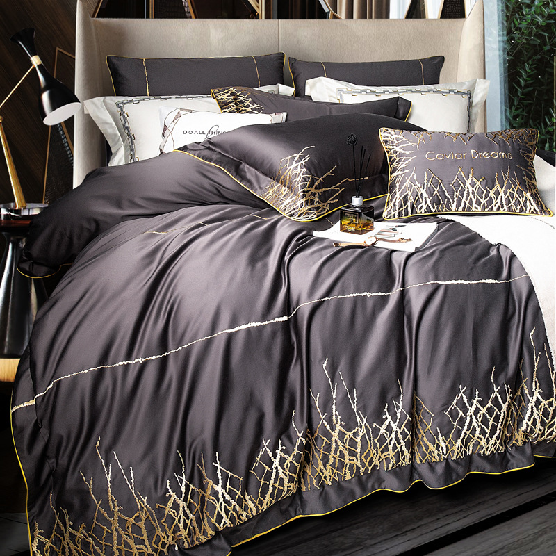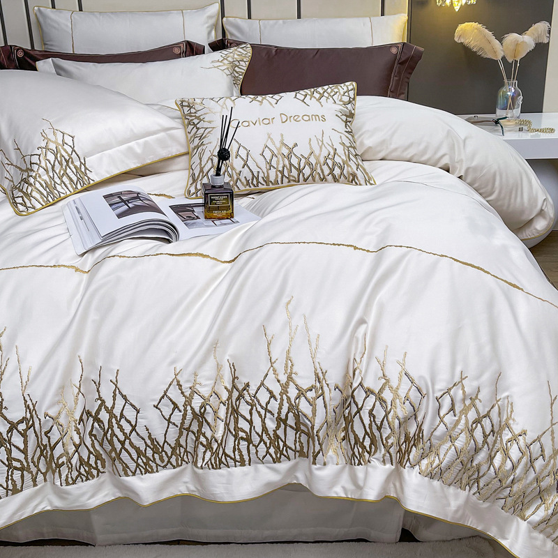 고급 유럽식 럭셔리 심플 모델 룸 140 면 4 피스 세트 자수 이불 커버 침대 시트 침구 키트